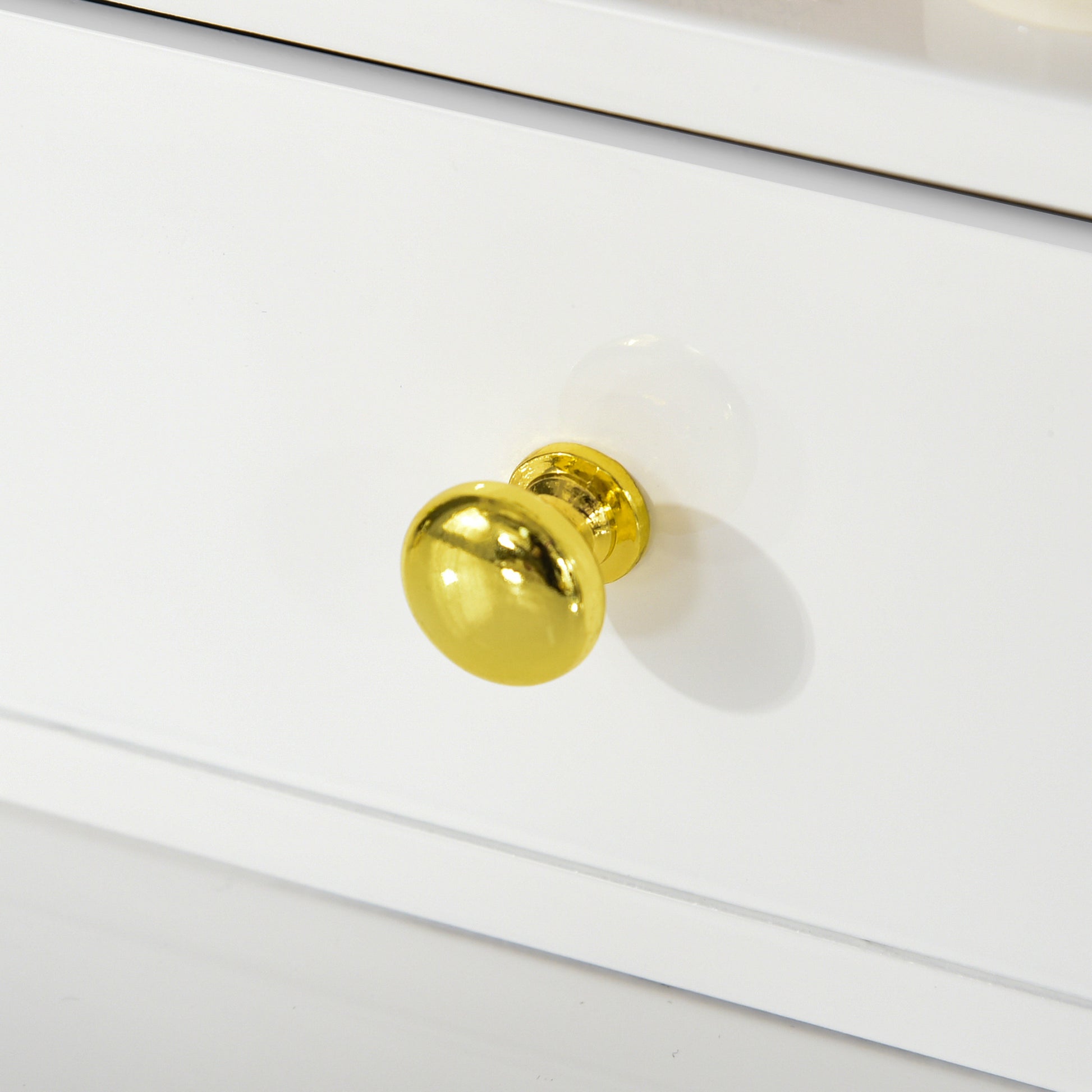 - TWO-PIECE SET: Formed of the dressing table and matching stool. Table is made from sturdy and resilient MDF. Stool is filled with sponge padding for comfort and has wooden legs in golden colour for luxury look.