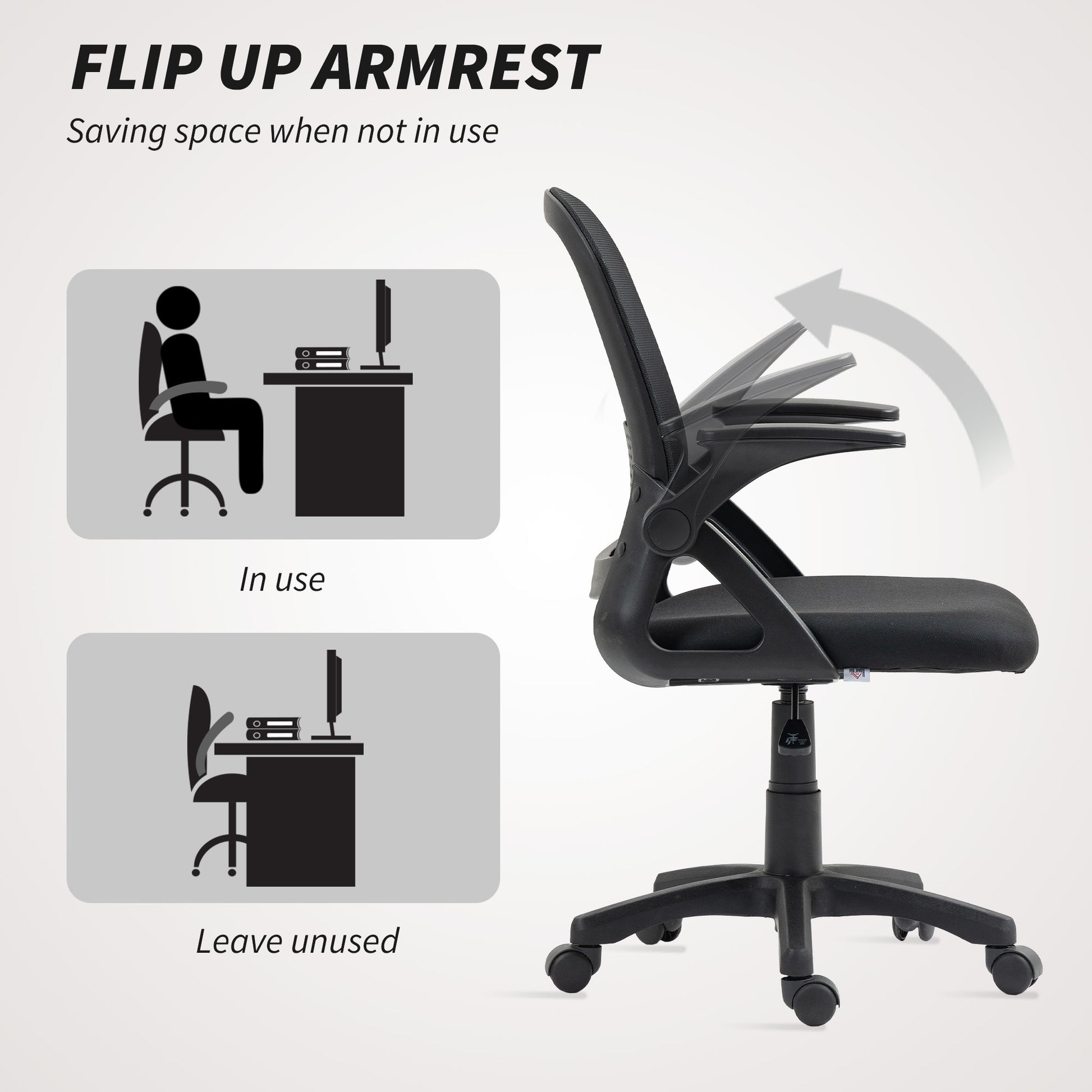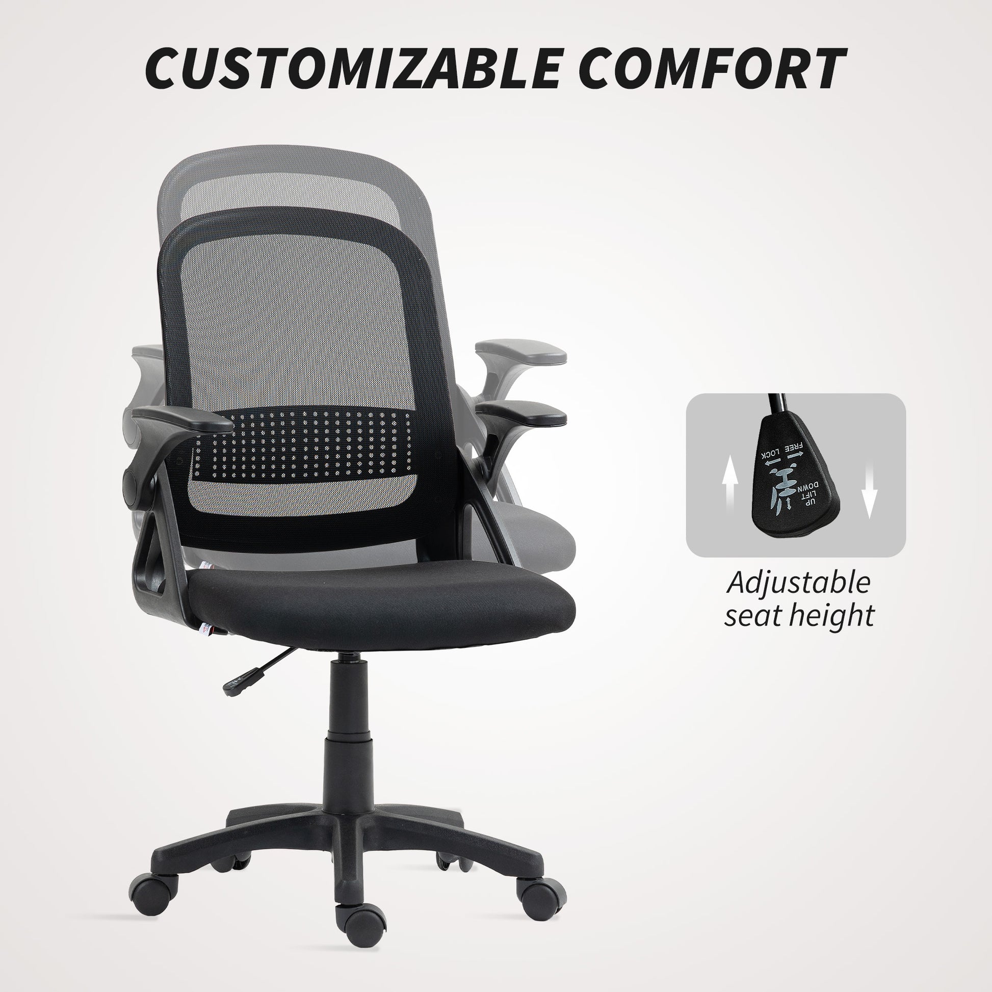 Ergonomic Swivel Computer Chair with Flip-up Armrests, Black