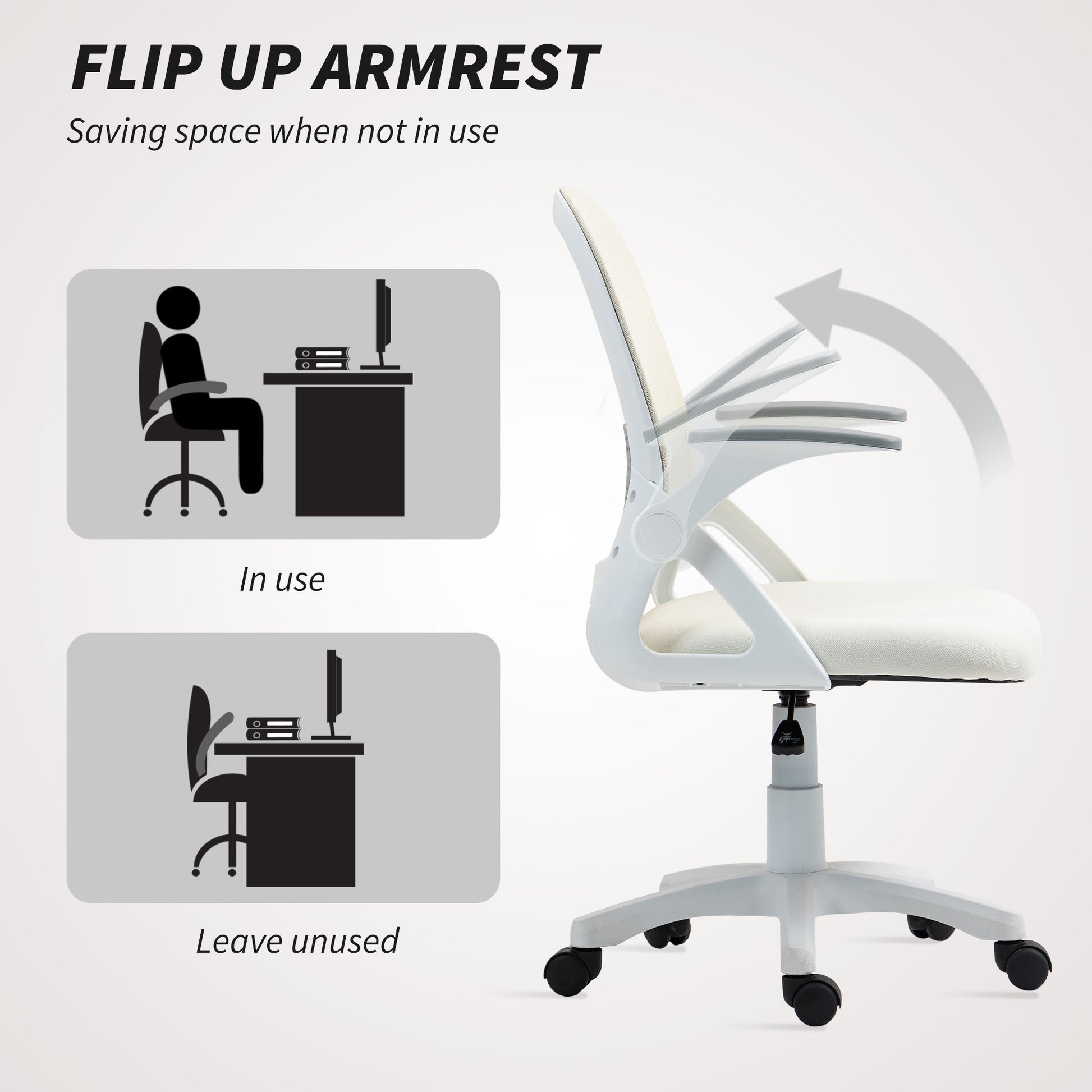 Ergonomic Swivel Computer Chair with Flip-up Armrests, White