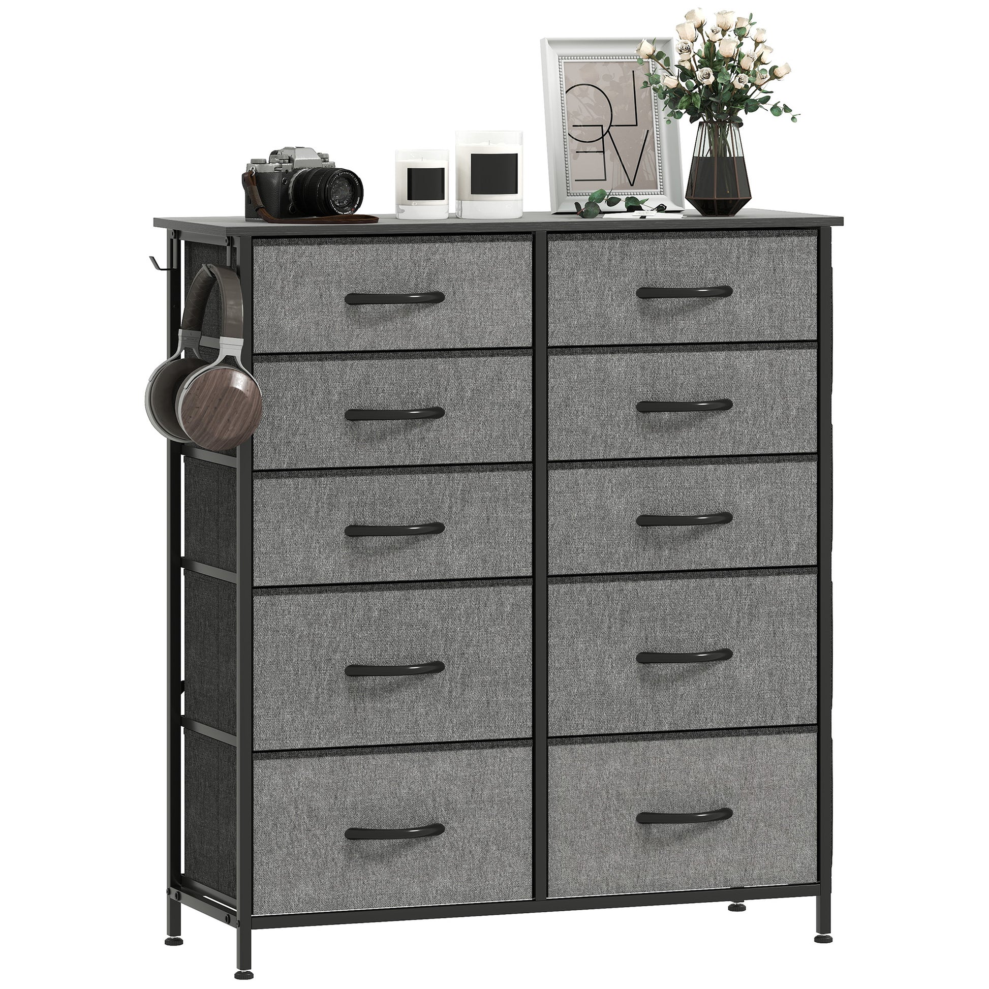 Fabric Chest of Drawers, 10 Drawer Dresser for Bedroom, Charcoal Grey
