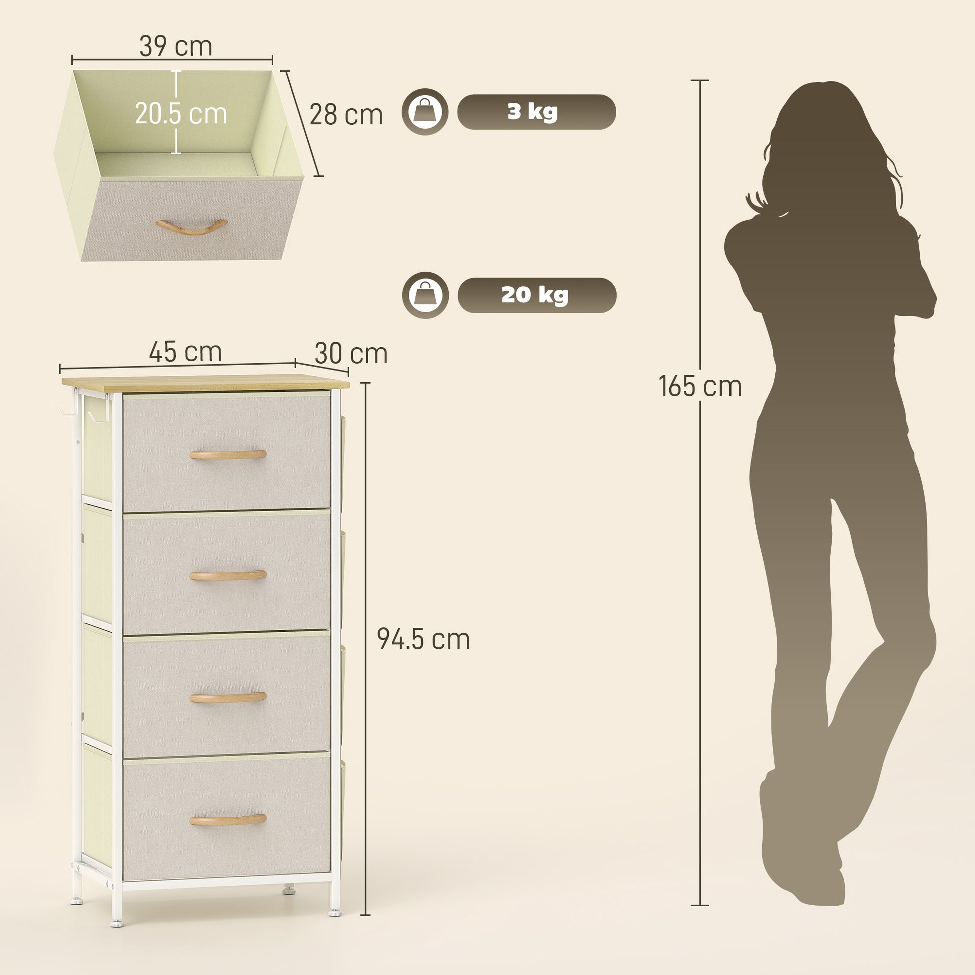 Fabric Chest of Drawers, 4 Drawer Dresser for Bedroom, Beige