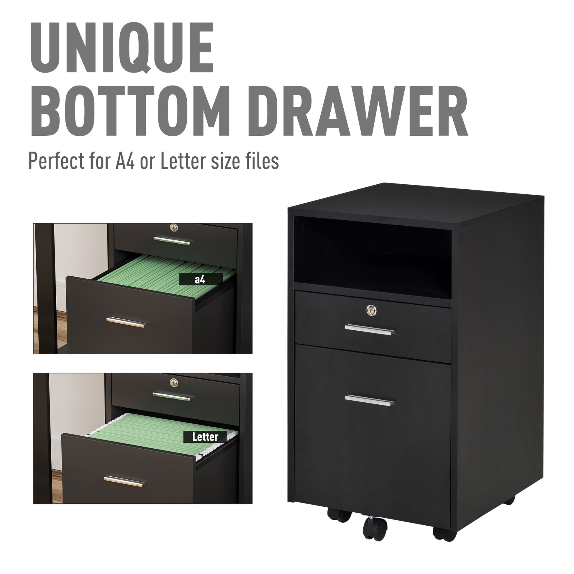 Mobile File Cabinet Lockable Storage Unit Cupboard Home Filing Furniture for Office, Bedroom and Living Room, 39.5x40x60cm, Black