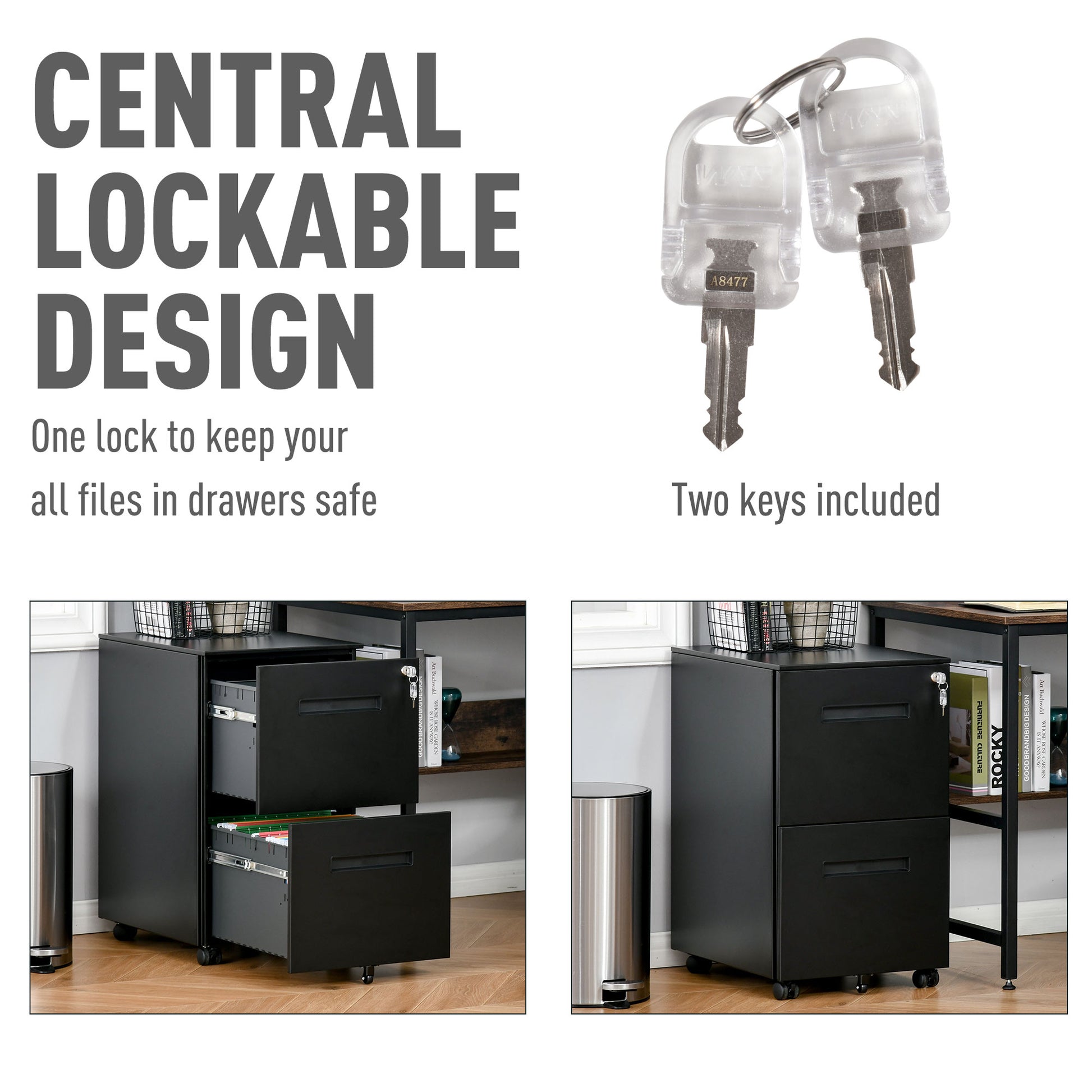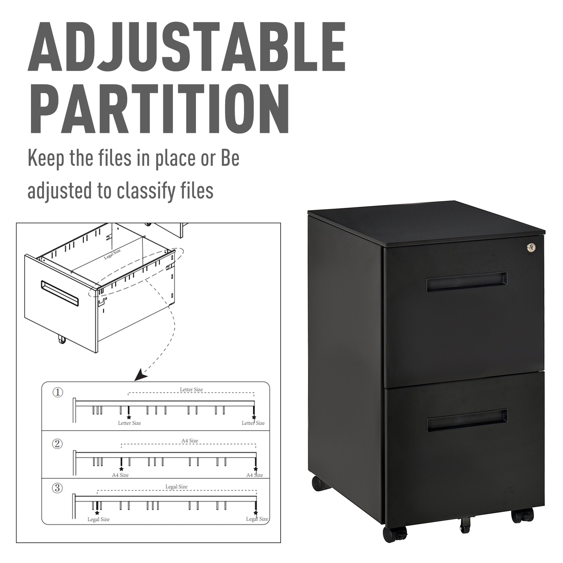 2-Drawer Mobile File Cabinet for A4 File, Mobile File Cabinet Vertical Organizer Filing Furniture with Adjustable Partition, Black