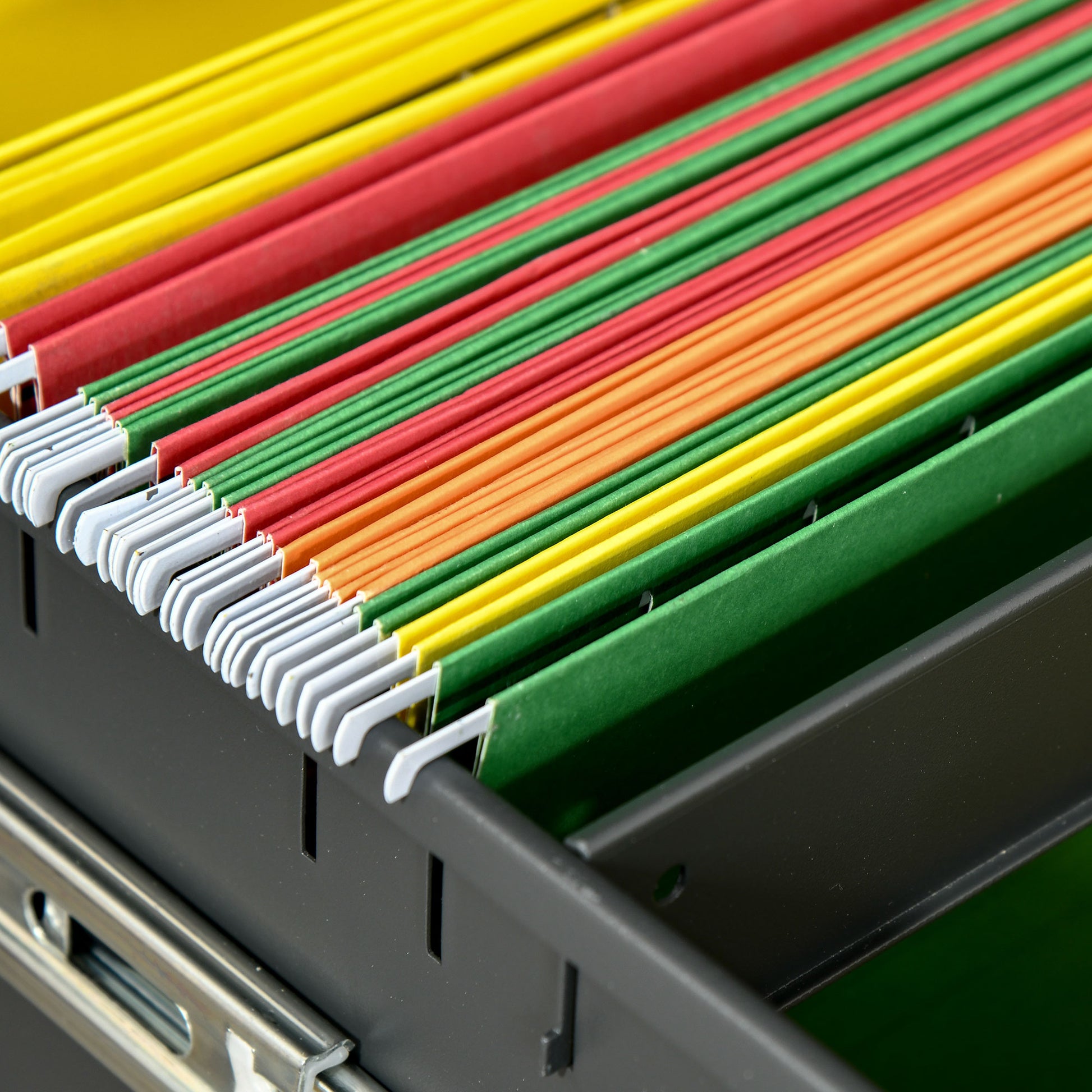 - 2 drawers are designed for hanging A4, letters, and legal-sized files