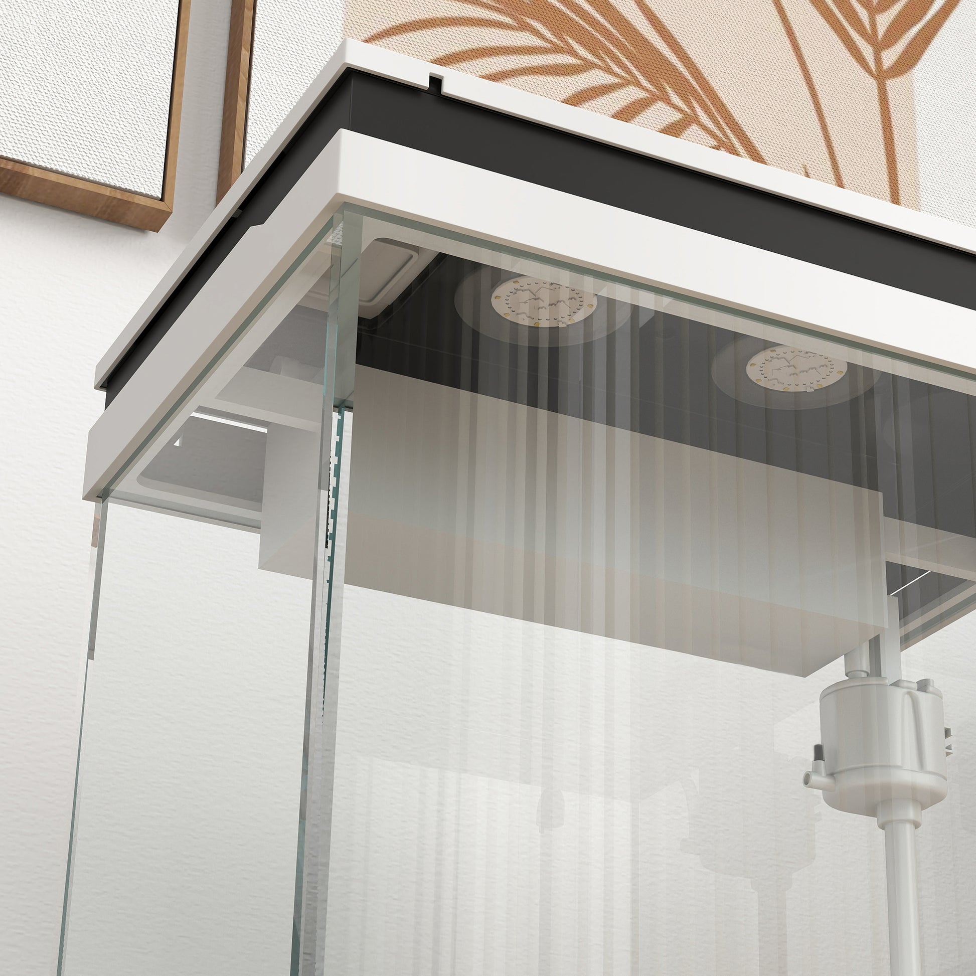 Fish Tank, 14L Glass Aquarium with Filter System, LED Lights, Water Pump, Small Fish Tank for Betta Fish, Goldfish, Shrimps, White