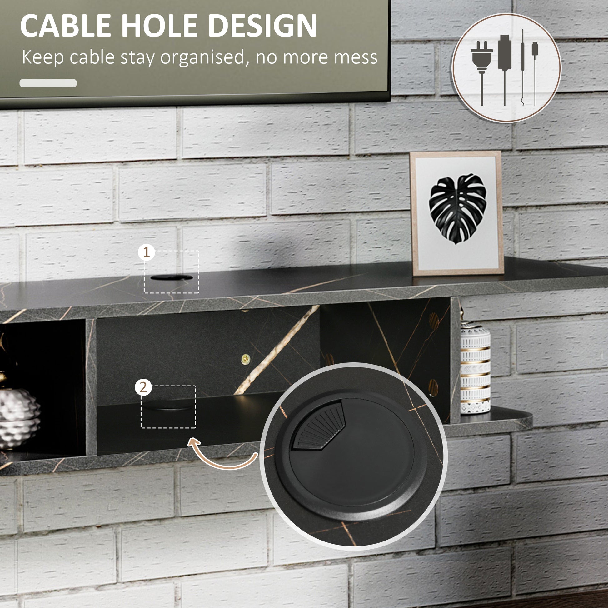 - Cable management: TV console comes with back holes, helping to keep the wires organised together and the area tangle free.
