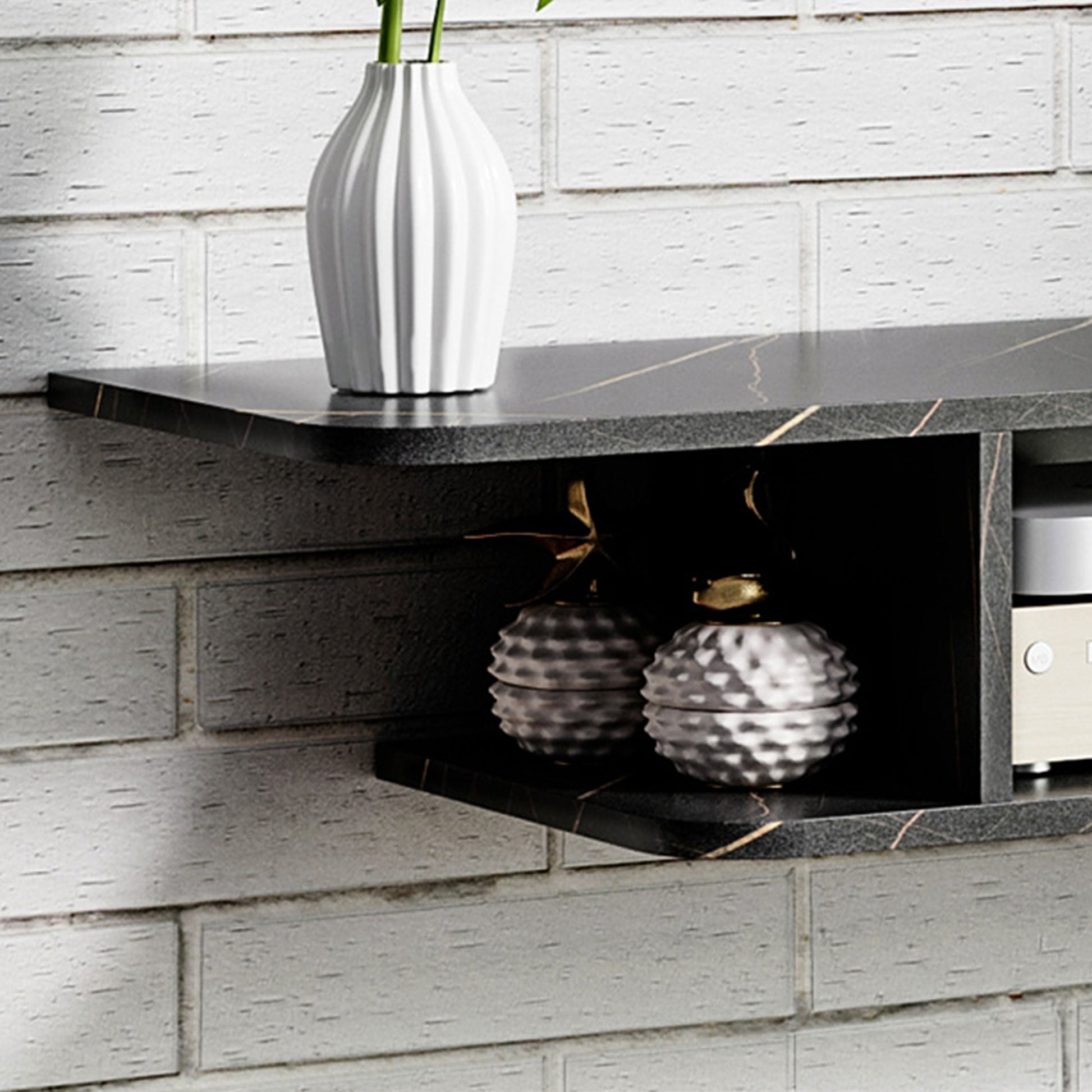 - Floating design - attach to your shelf and fix your TV screen above