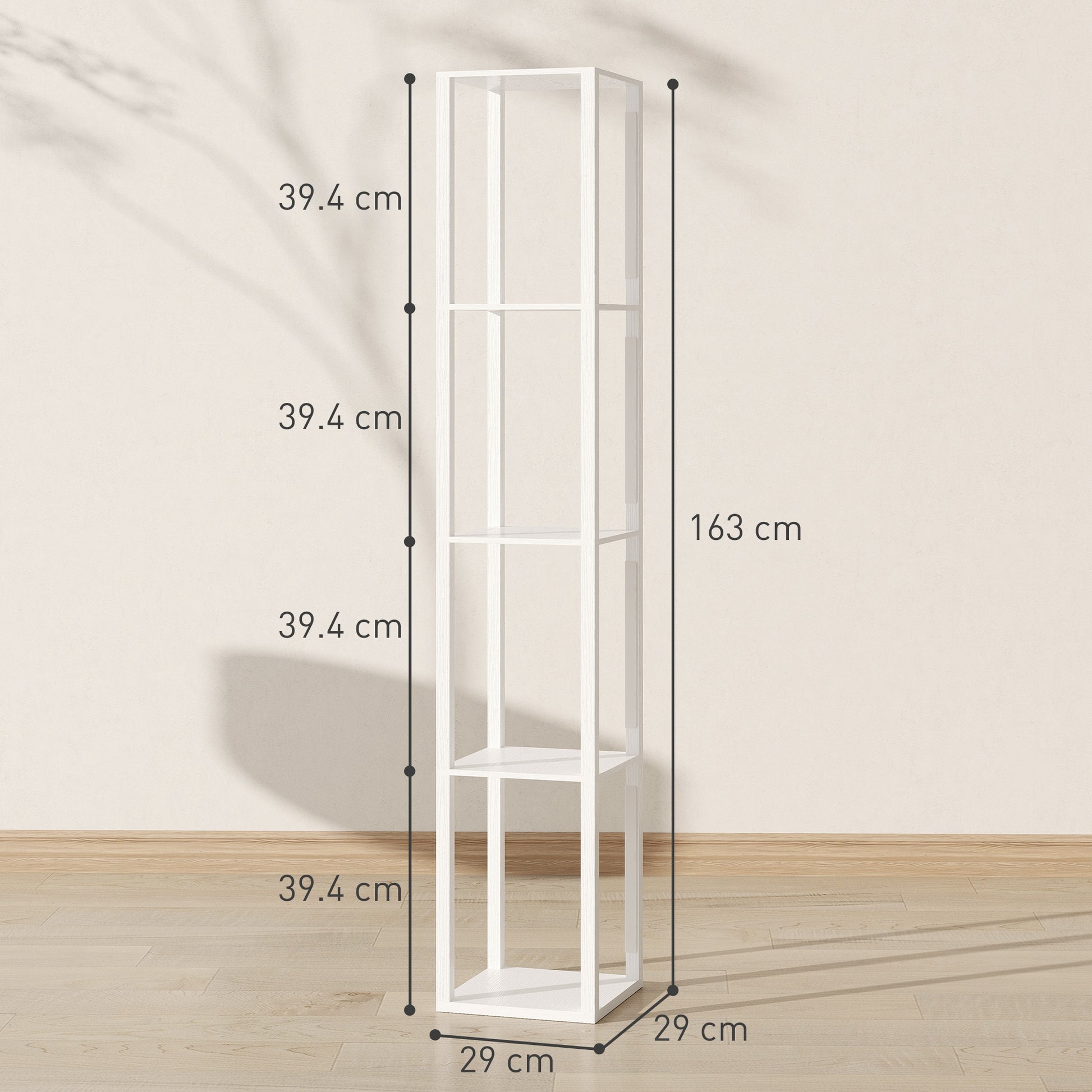 Light up your space with the floor lamp with shelves! This shelf floor lamp features a warm white LED lamp, adjustable across three brightness levels, ensuring the optimum ambiance for any occasion. With four tiers of shelving, it stylishly maximizes your storage space, great for any living room. Illuminate and organise effortlessly with this sleek addition to your home decor.Specifications