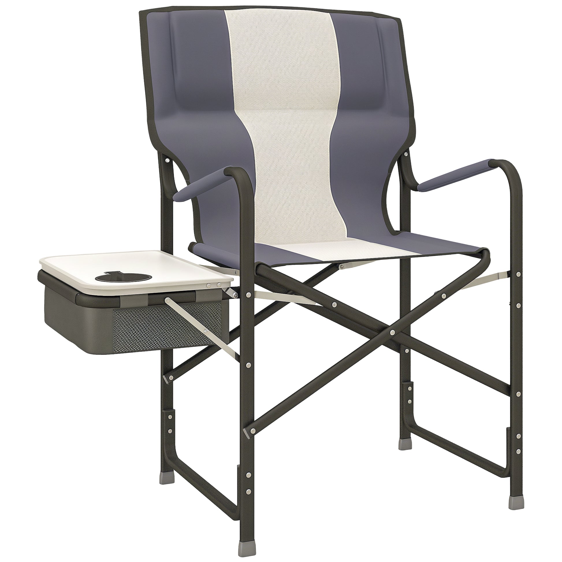 Folding Directors Chair Aluminium Camping Chair with Cooler Bag Grey