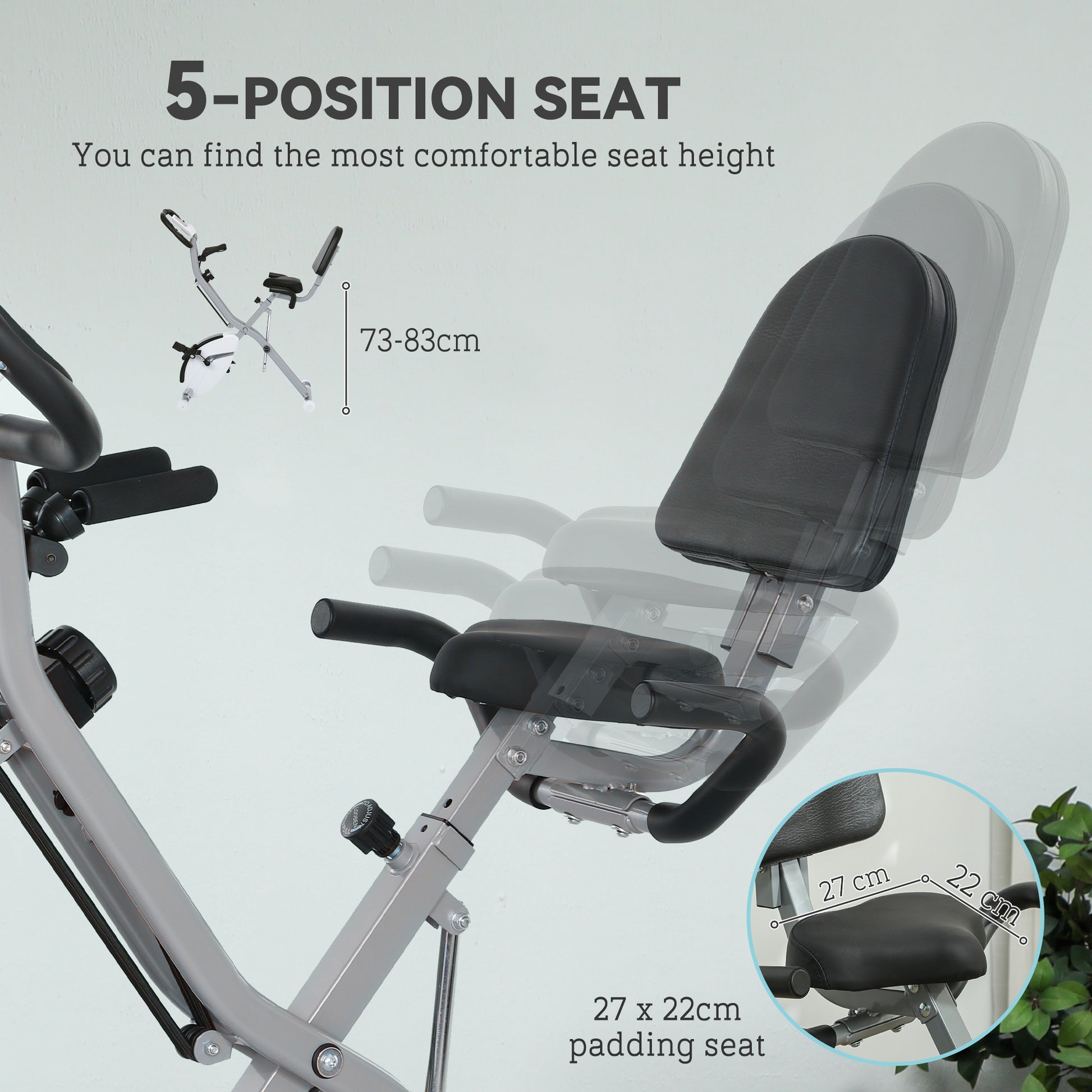 Transform your fitness routine with the SPORTNOW foldable bike! Choose from five riding positions, including recumbent and upright, to customise your workout. With 8-level adjustable magnetic resistance, enjoy a smooth, silent cycle every time. Plus, it's a breeze to store and move around, thanks to its compact, fold-away design. Ready to pedal your way to health?Specifications