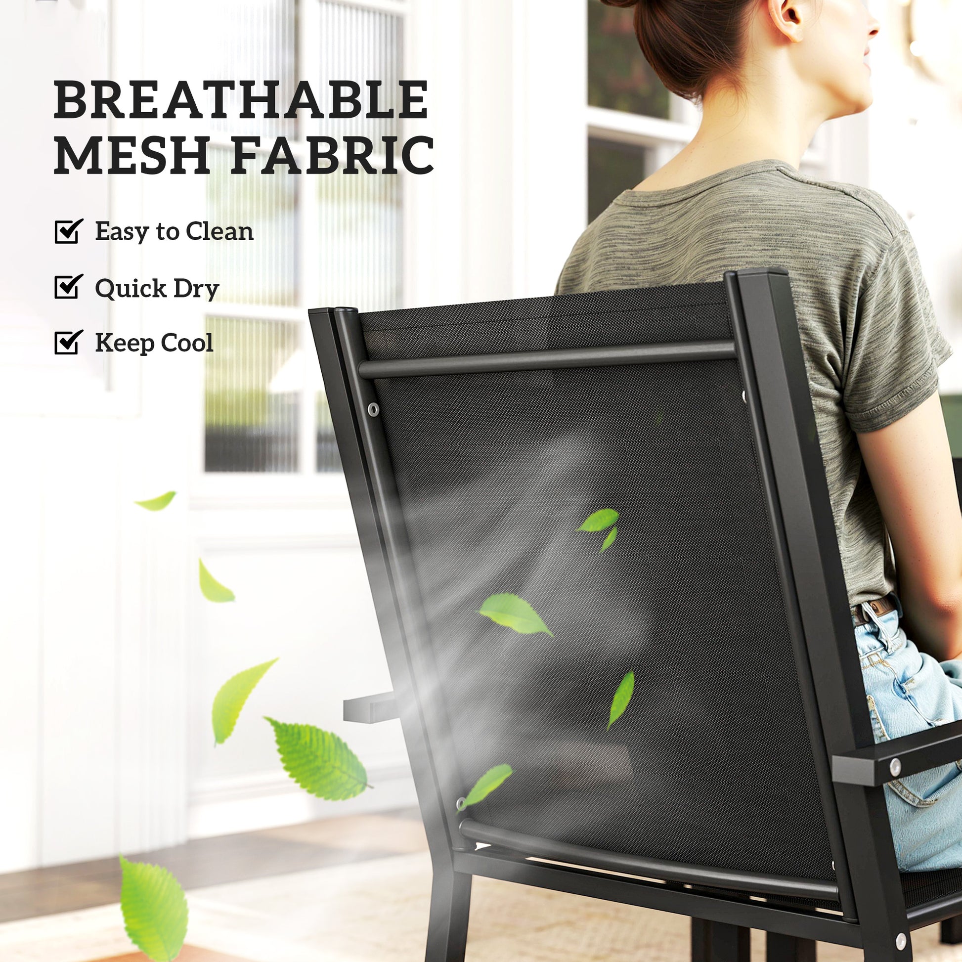 - Texteline fabric on the seat and back for breathable, cool dining experience