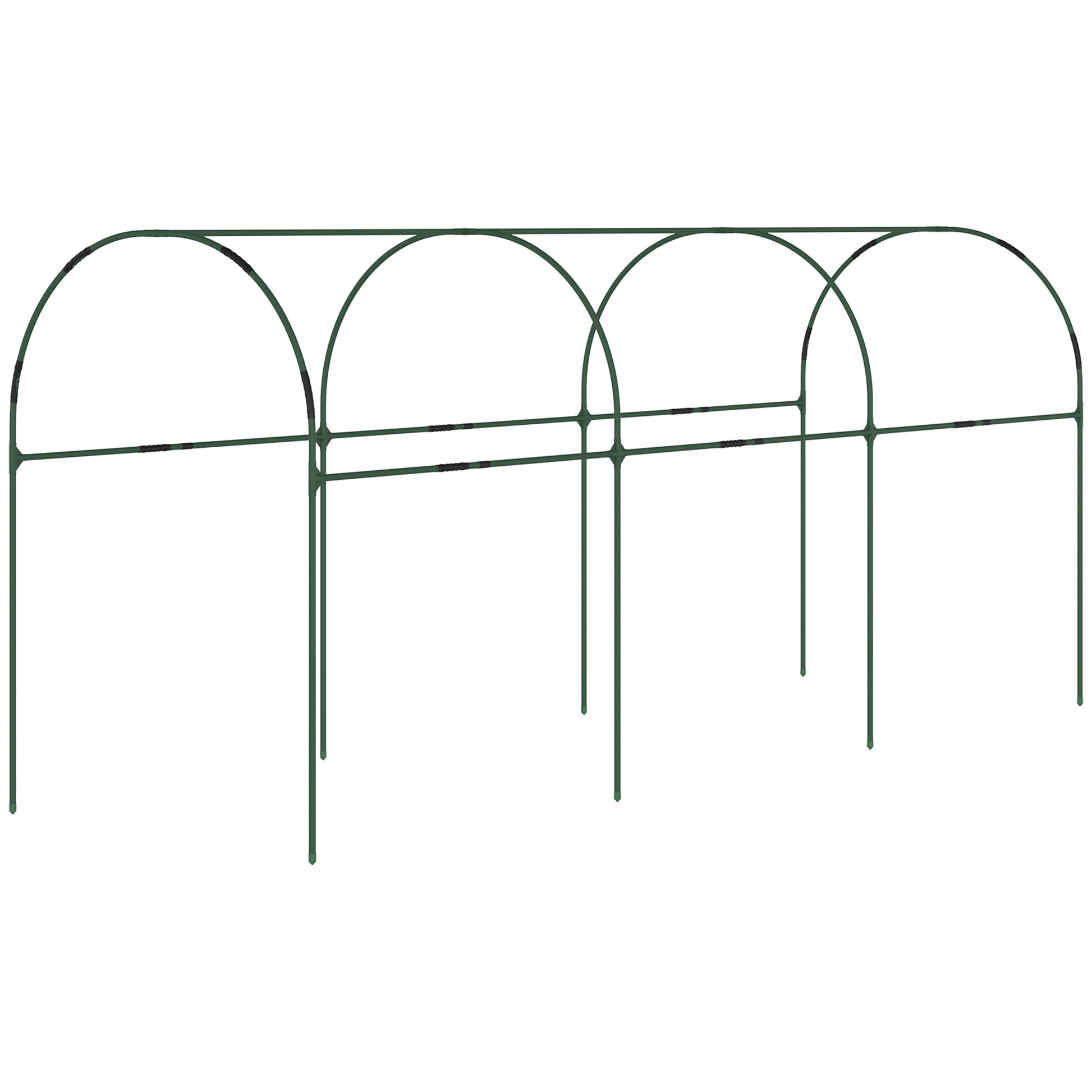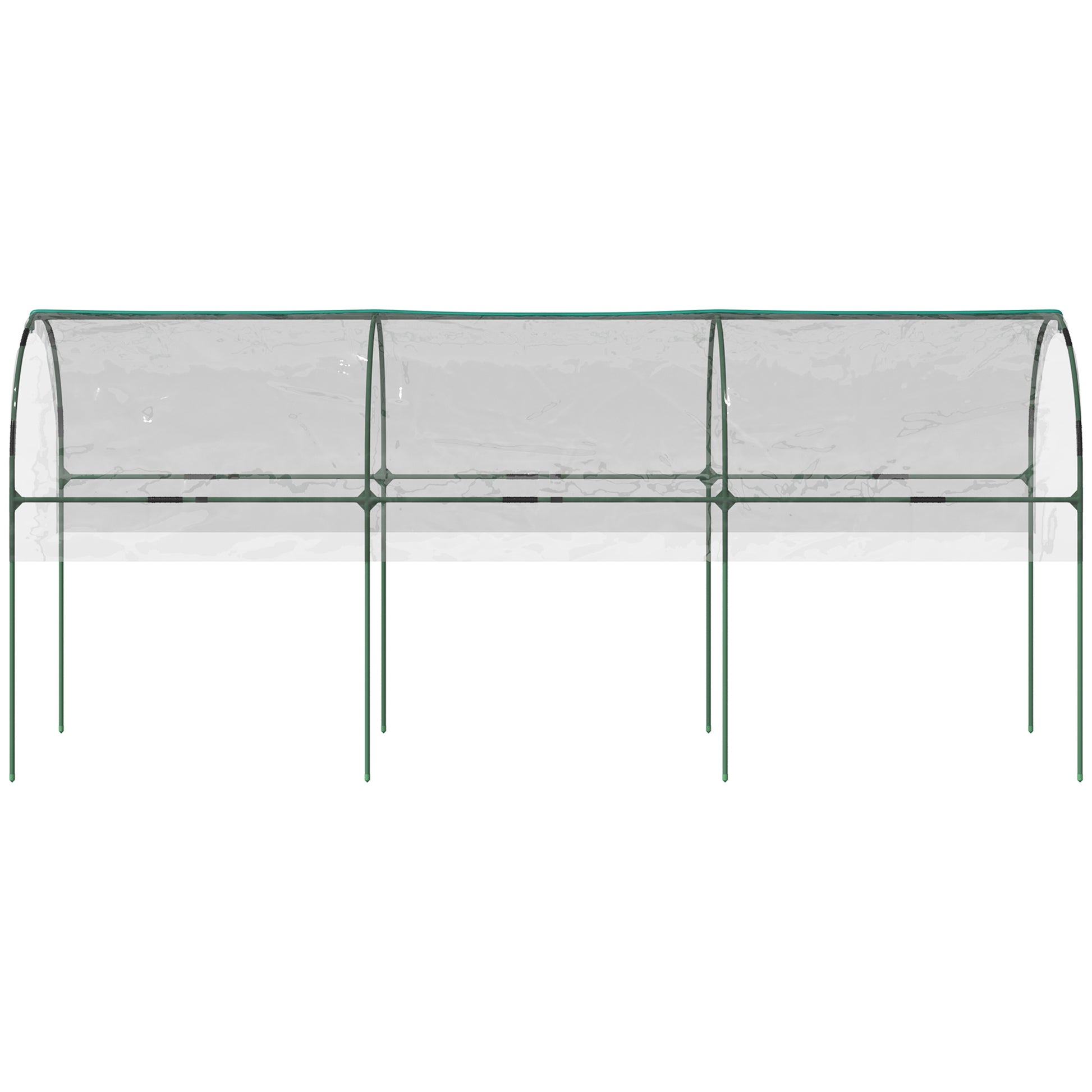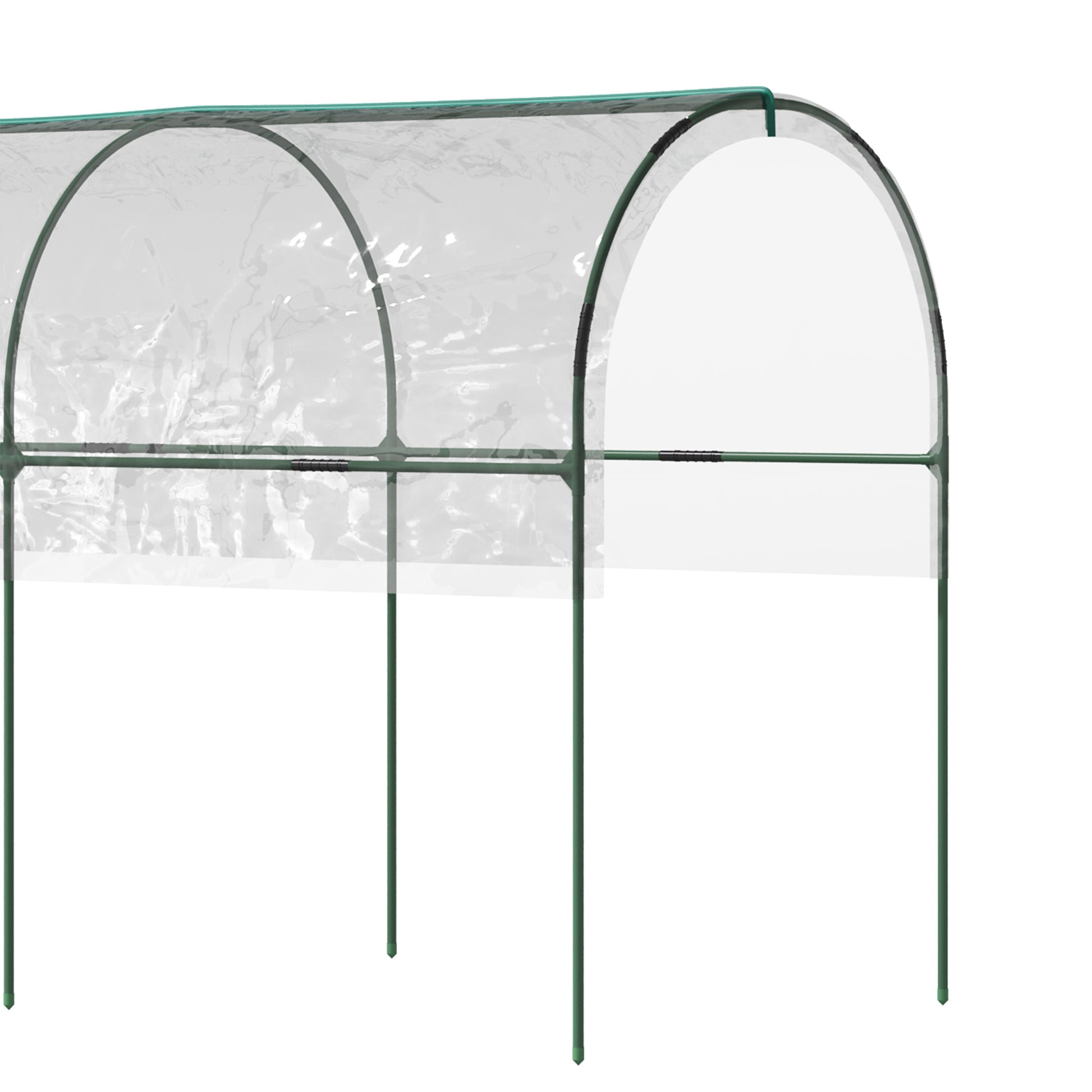 Covered, yet open: this Outsunny top shelter greenhouse keeps plants protected from above, whilst allowing air from below - helping to encourage growth to its best. A steel frame for a strong standing structure, moulded into a curved tunnel shape; the plastic half cover protects water entering, the arch prevents liquid built-up. Comes with four guy ropes and eight ground stakes to pin to ground and keep it in place.