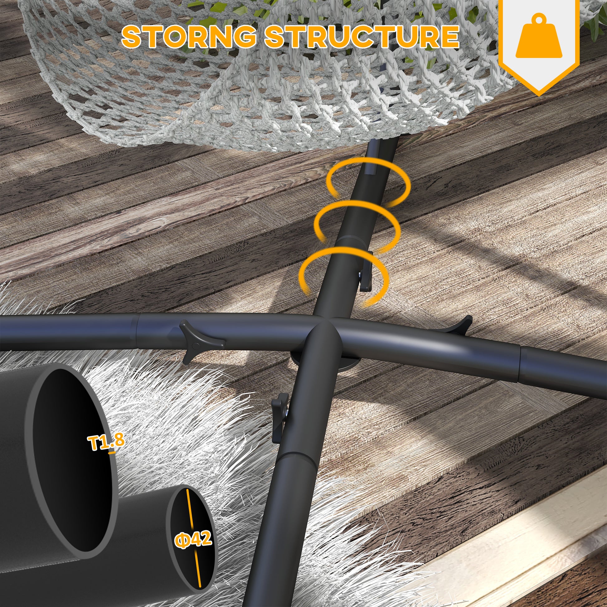 - Selected material: Crafted from a heavy-duty metal frame with a main pipe specification of Φ4.2 x 1.8 cm, ourswing chair stand exhibits exceptional strength and durability. Its powder-coated finish adds an extra layer of protection, enabling it to withstand various weather conditions with ease.