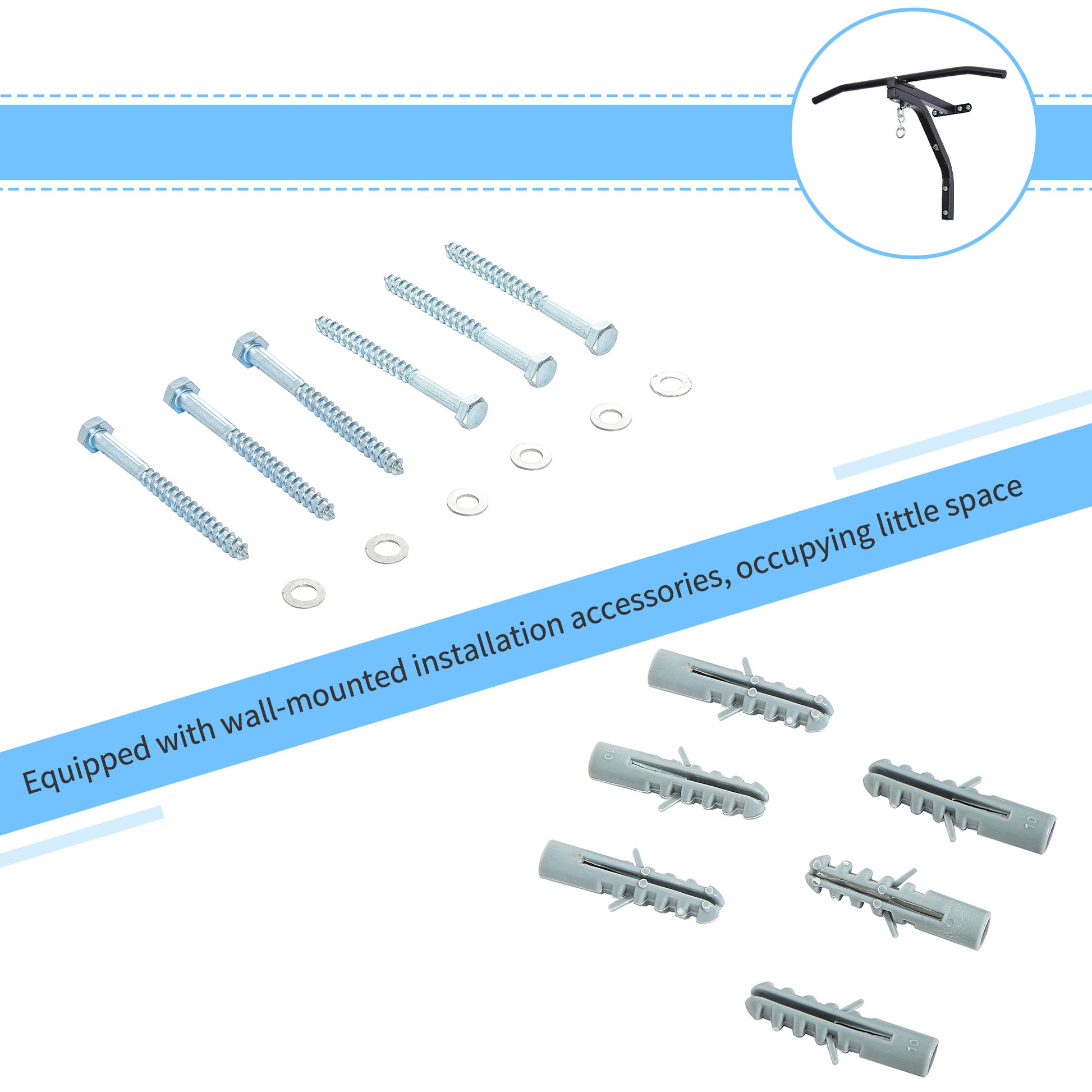 This punch bag bracket with a chin-up bar is an effective way to work most of the upper body muscles and it is an ideal trainer for shaping your upper body, chest, back, and arms. Perfect for the home gym or health club, this hanger can be used for boxing, kickboxing, or MMA bags. The wall mount comes with all of the necessary hardware. Constructed of heavy-duty steel, our wall hanger is durable and safe for a lifetime.Specifications
