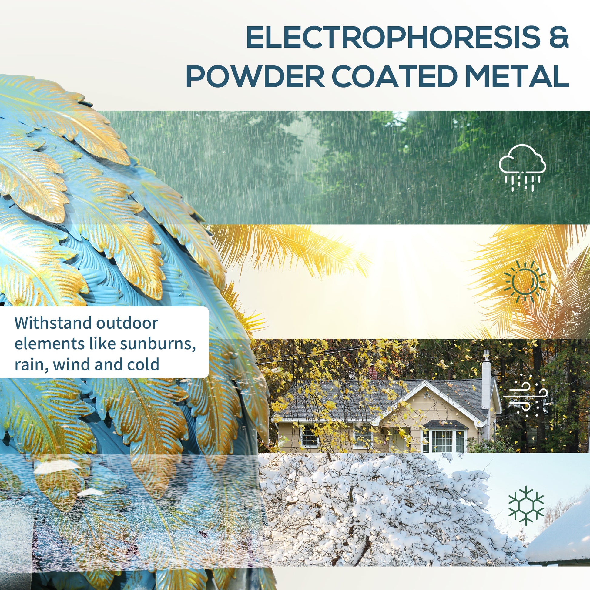 A bit monotonous in the garden? Looking for an eye-catching decorative piece? Let garden statue lights up your garden. Bright colours and vivid details. Built to withstand outdoor elements, this metal garden statue undergoes electrophoresis and powder coating processes, while its stable standing is enhanced by two U-shaped ground stakes.Specifications