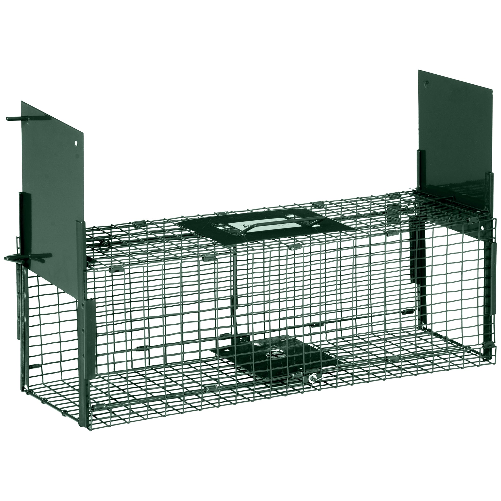 Is there an animal wreaking havoc in your garden or feasting on your crops and you wish to capture it safely? This live trap is great for the task. It allows you to safely capture animals without any harm. Featuring a highly sensitive mechanism, it ensures efficient and precise trapping. Its green hue blends seamlessly into the wilderness, making it a discreet yet effective solution!Specifications