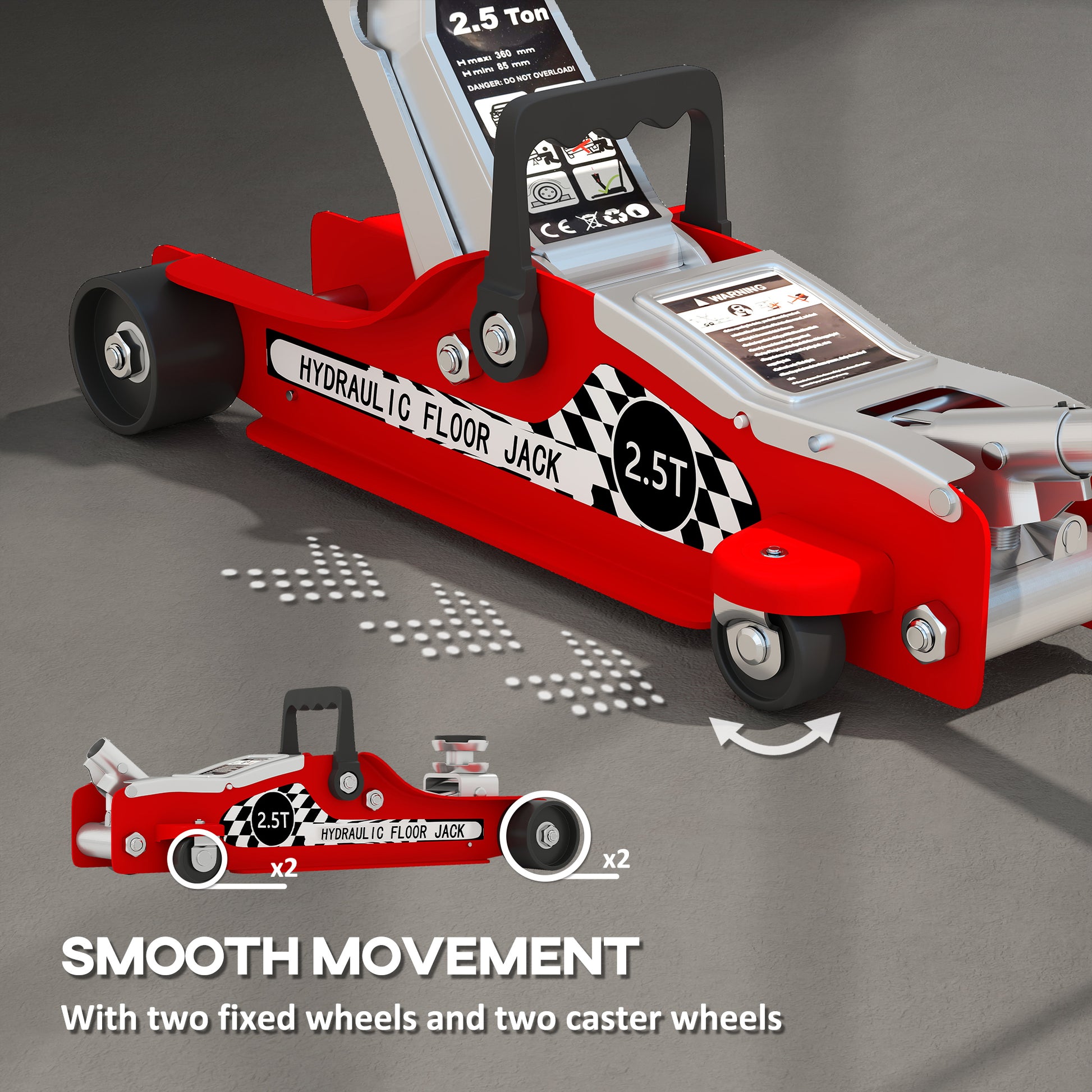 Hydraulic Low Profile Floor Jack, 2.5 T 80-360 mm Steel Car Jack, Red