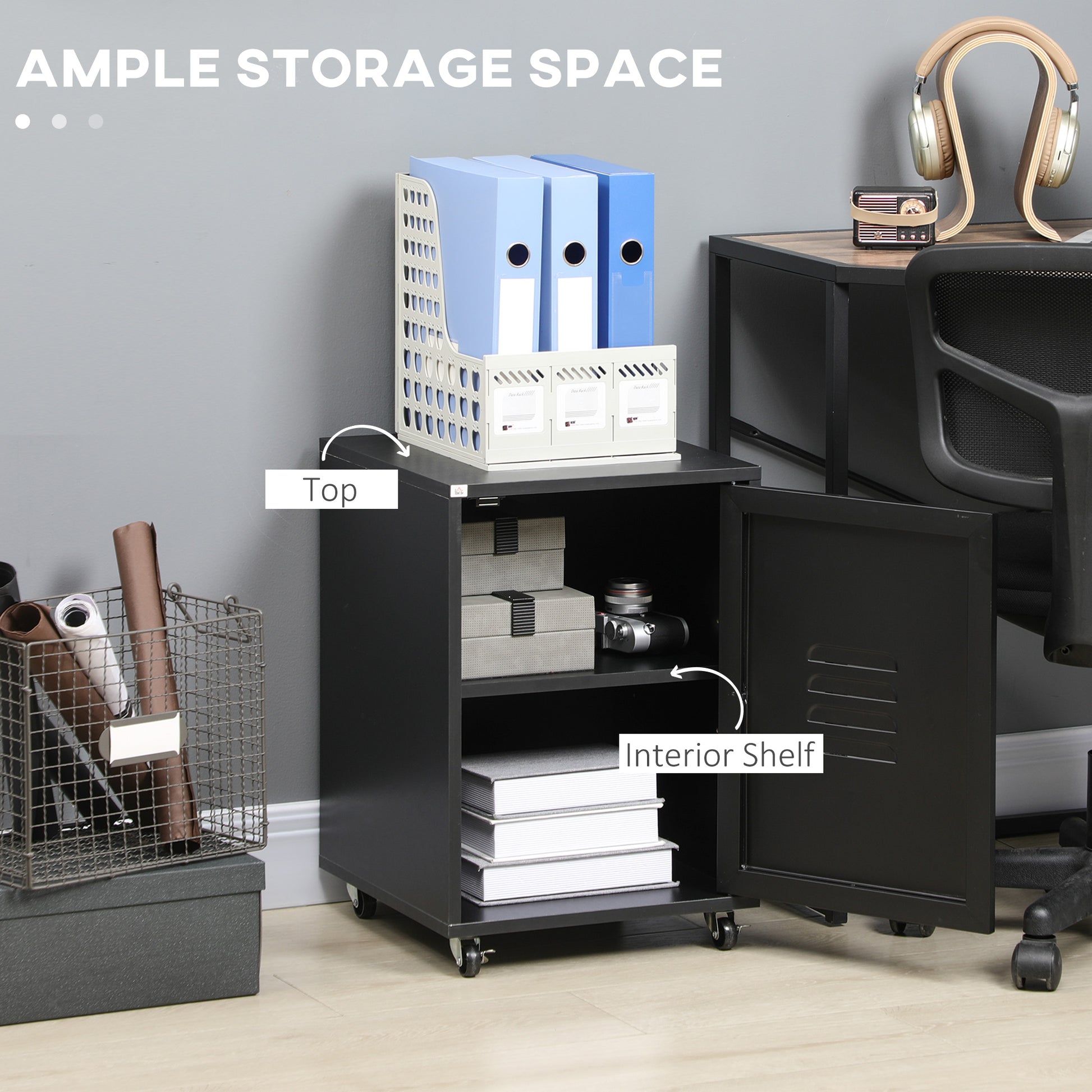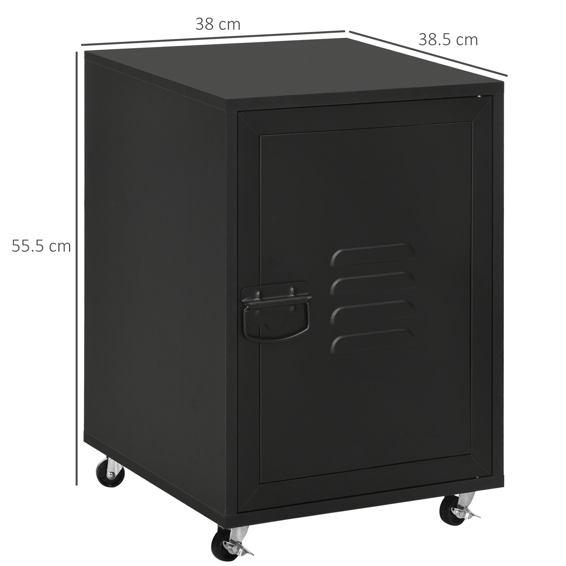 Industrial Bedside Table, Rolling End Side Table, Mobile Storage Cabinet With Adjustable Shelf, Wheels & Metal Door for Bedroom, Living Room
