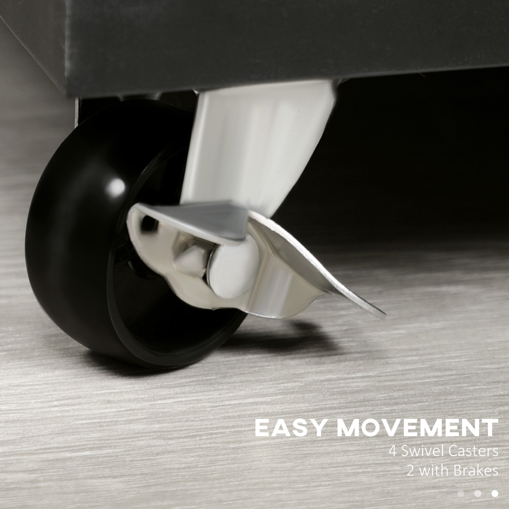 Pure industrial edge for your home or office - this cabinet is cool and quirky. It's a great piece to use as a nightstand, office cabinet or side table, for those looking to do it different this season and beyond. The structure, made from particle board is durable; fitted with a metal door to keep inside guarded. Front air vents for freshness inside. Handle on the front to open the door easily. Completed with four wheels to move around easily.