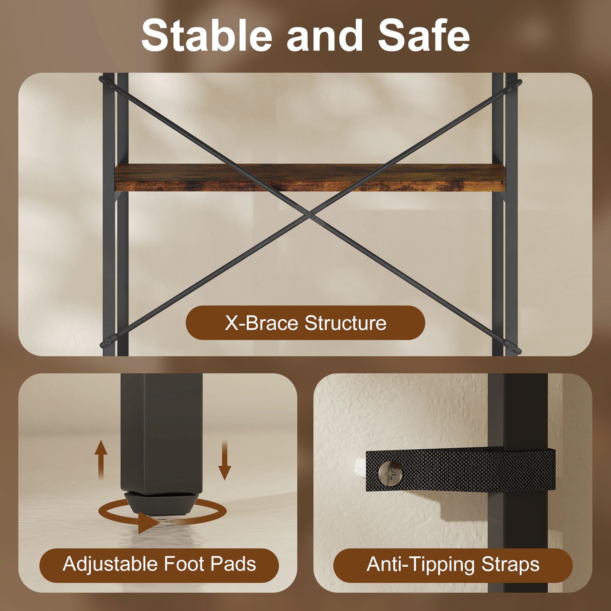 Industrial Bookshelf, Freestanding Bookcase, Rustic Brown and Black