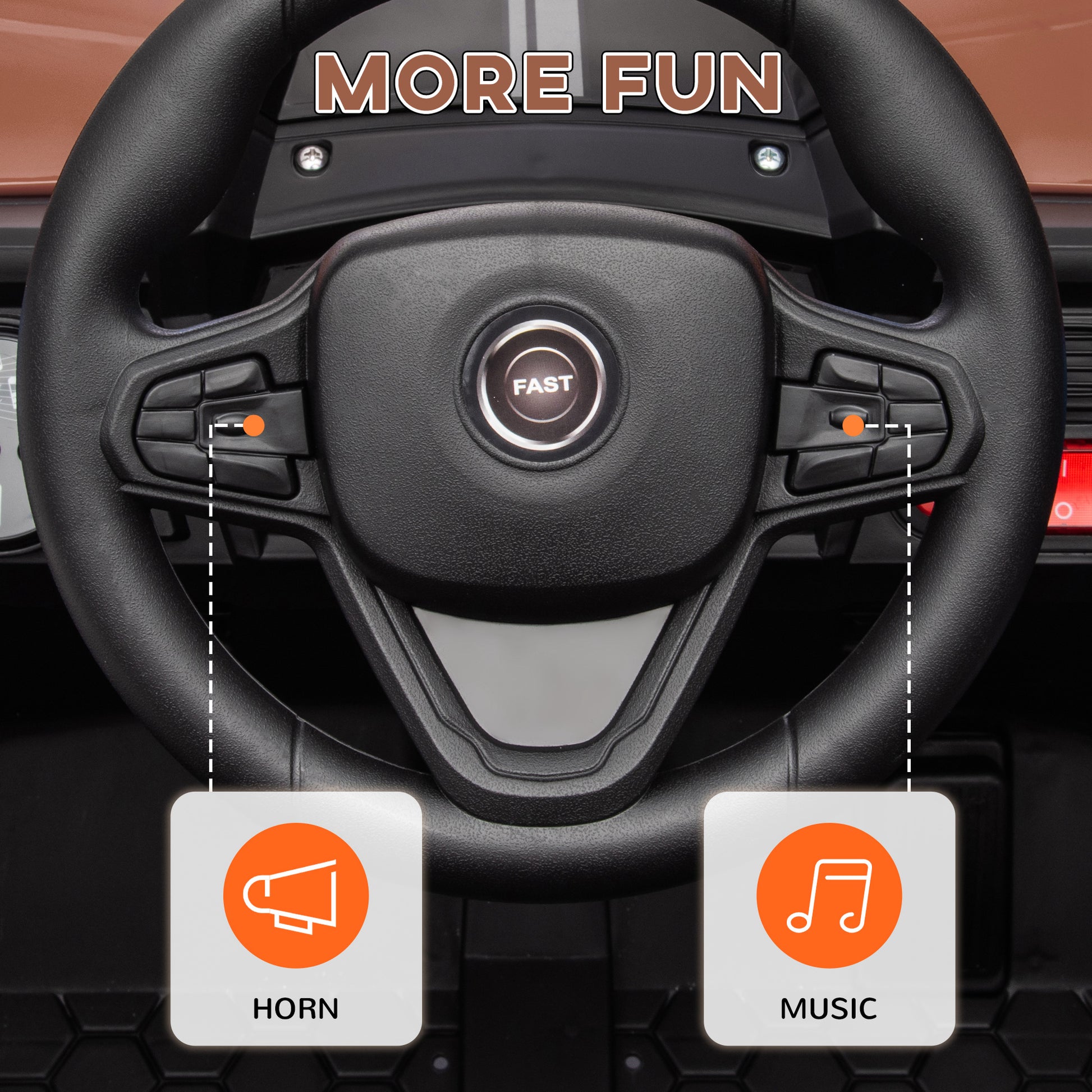 Kids Ride on Car, 12V Electric Truck w/ Horn Lights USB - Brown