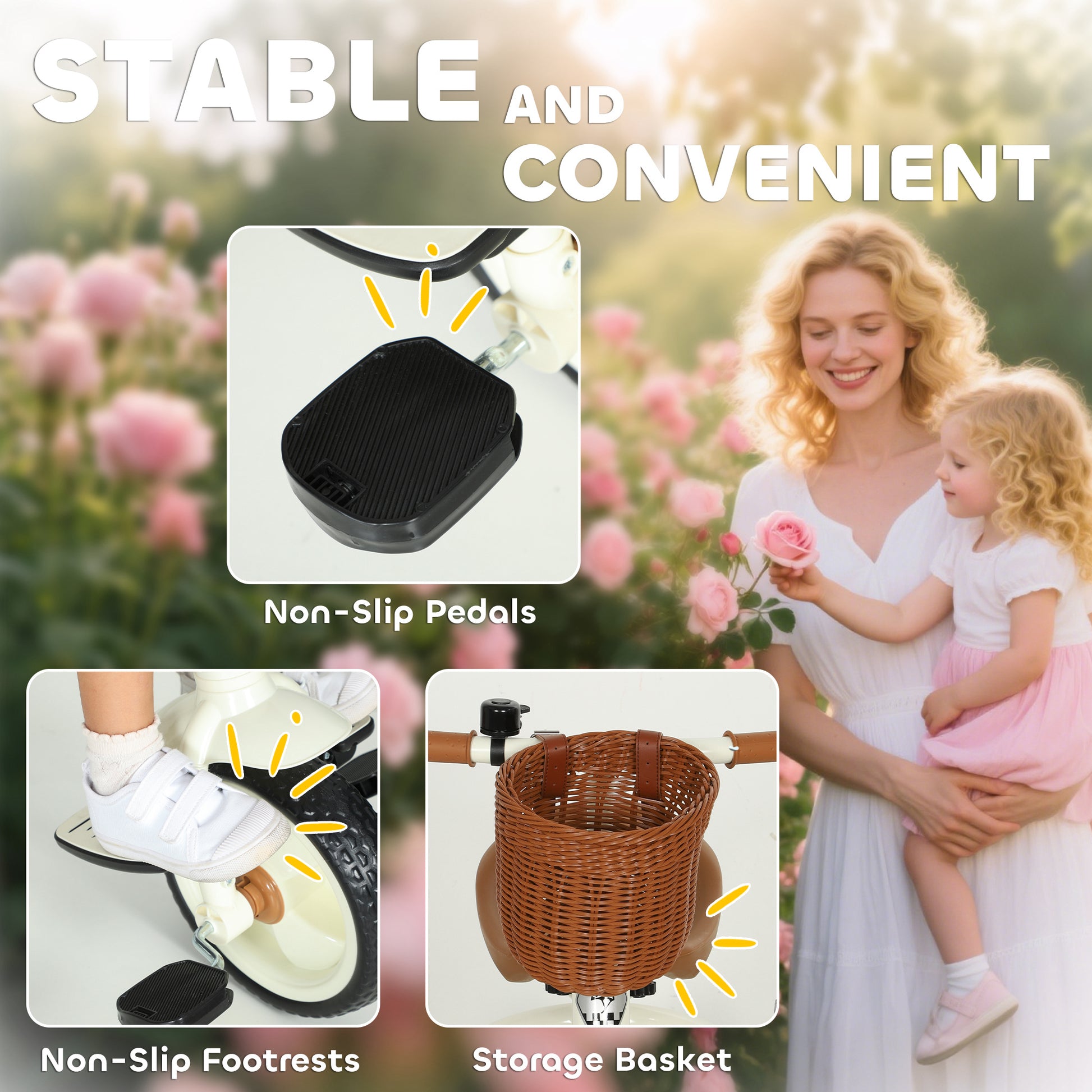 Kids Tricycle for 2-5 Years Old, 2-In-1 Toddler Trike with Adjustable Parent Handle, Pedals, Footrests, Storage Basket, 3 Wheel Bike for Boys and Girls, White