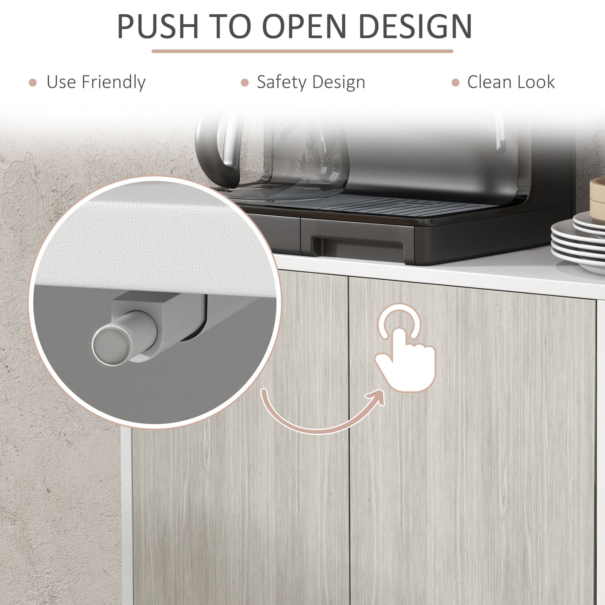 Kitchen Sideboard Storage Cabinet for Living Room with Adjustable Shelves 4 Doors and Pine Wood Legs White