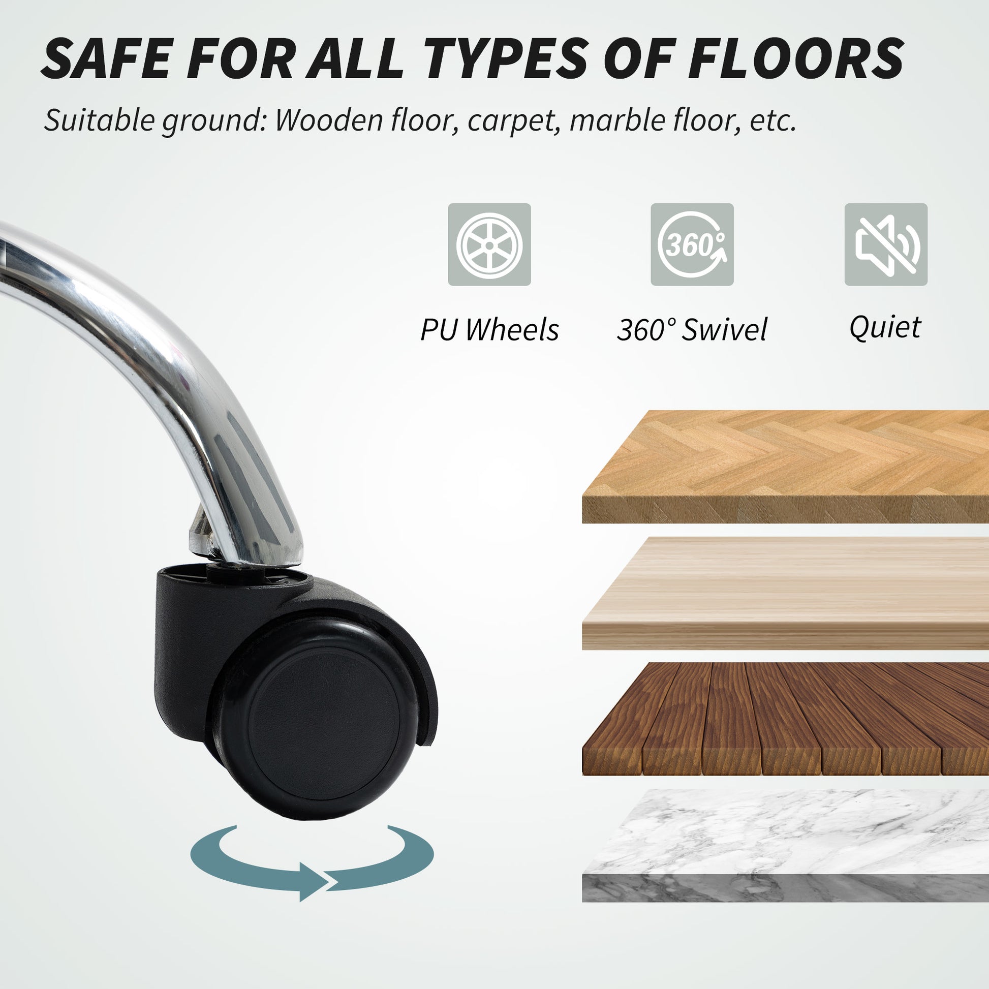 - Swivel wheels and seat for easy mobility. PU wheels safe on all floor types