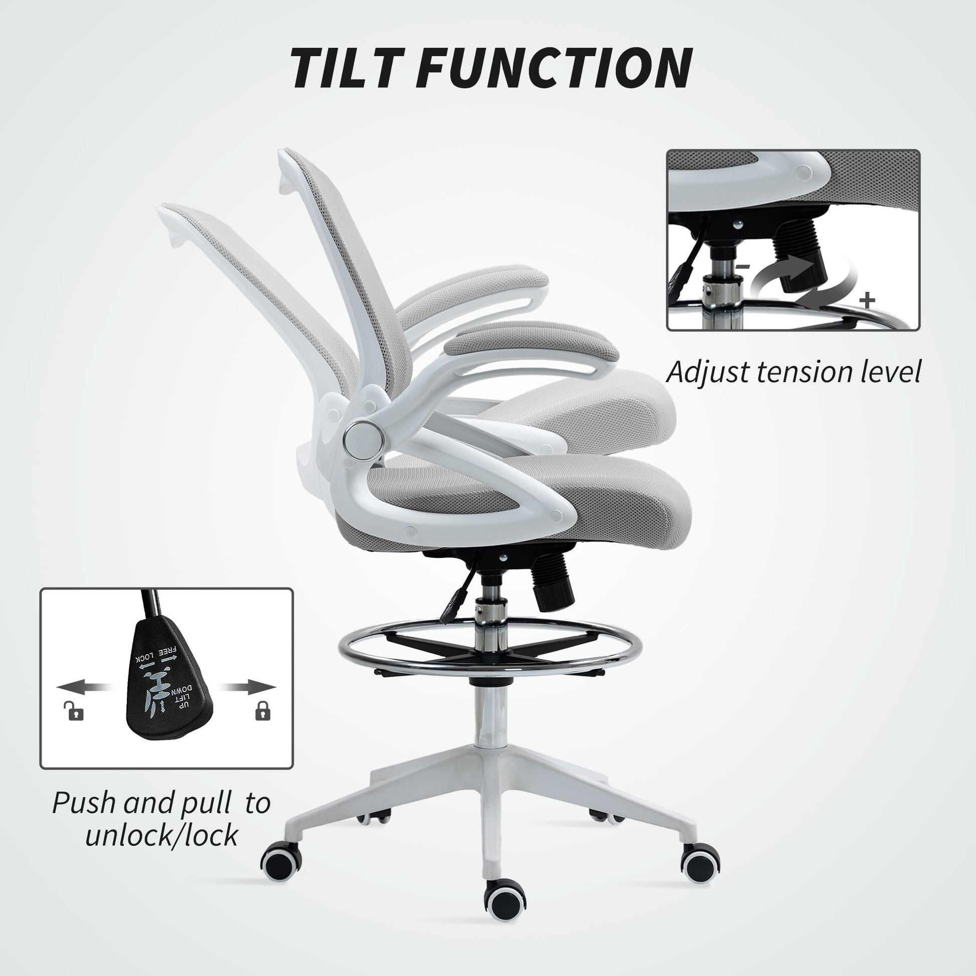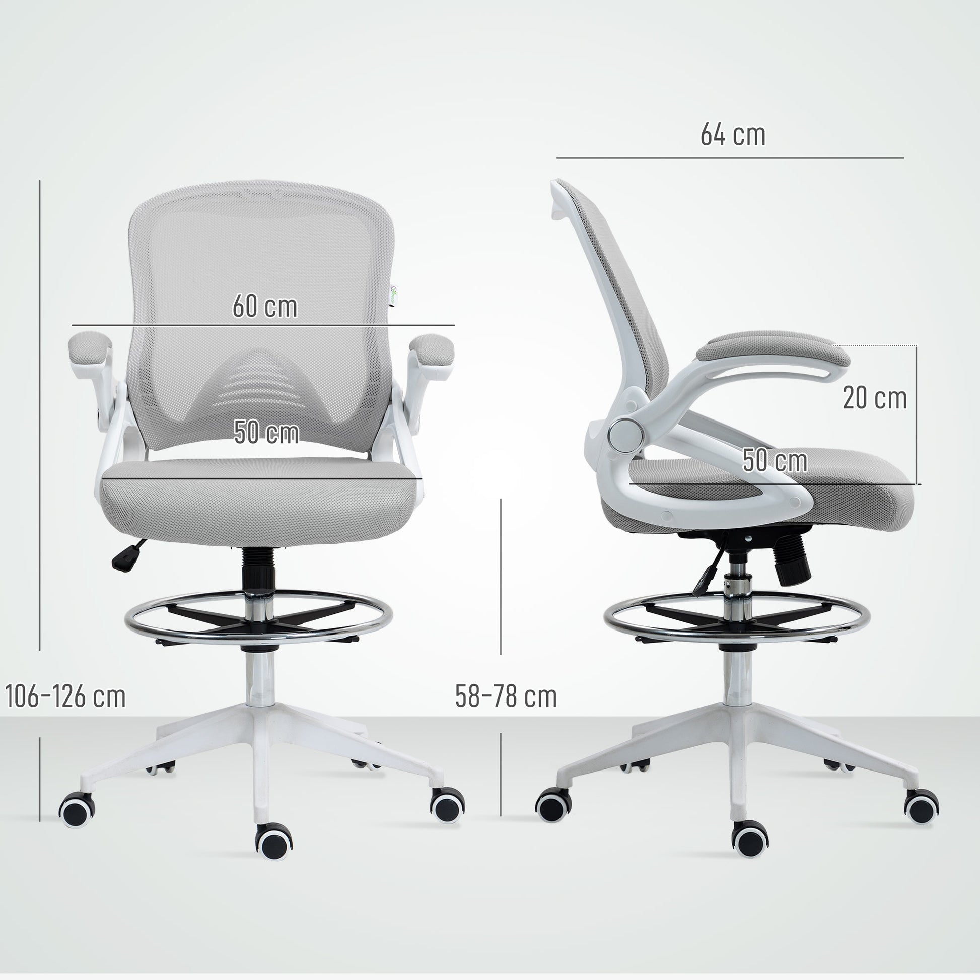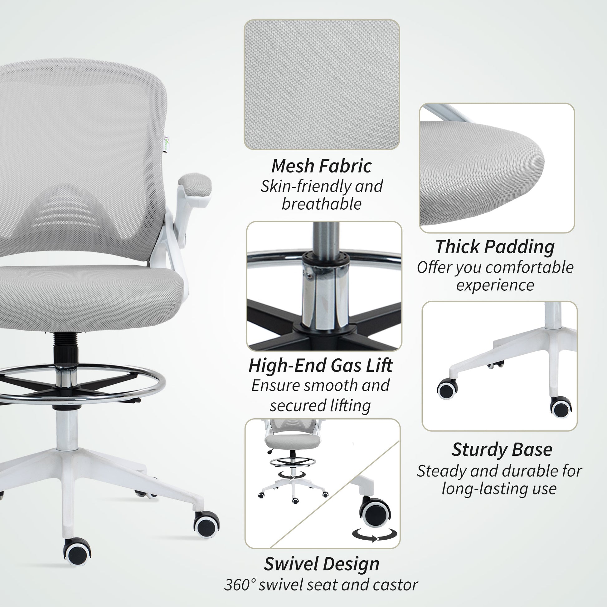 A quality chair must be comfortable even after sitting for long periods. The comfort of this Vinsetto draughtsman chair is achieved through breathable mesh material for the back, solid base casters and a fully adjustable chair body. The mesh chair's seat, armrest and footrest height are designed to fit your sitting style and ensure productivity. Make the most out of your office time with this drafting office chair from Vinsetto.Specifications