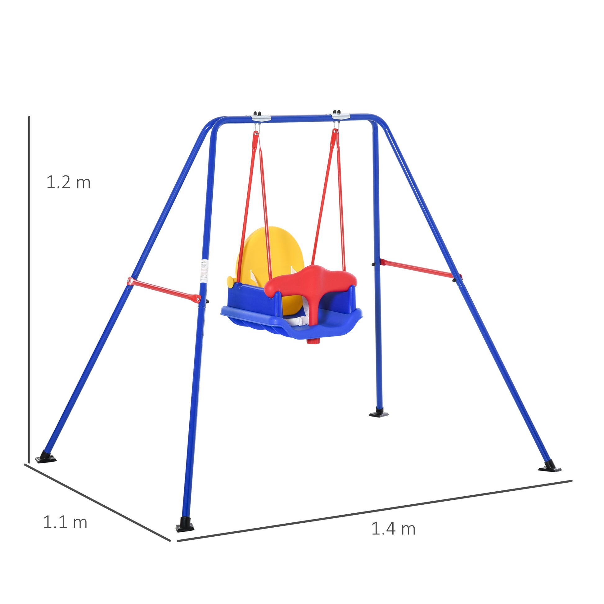 Metal Kids Swing Set with Baby Seat Safety Harness A-Frame Stand for Backyard
