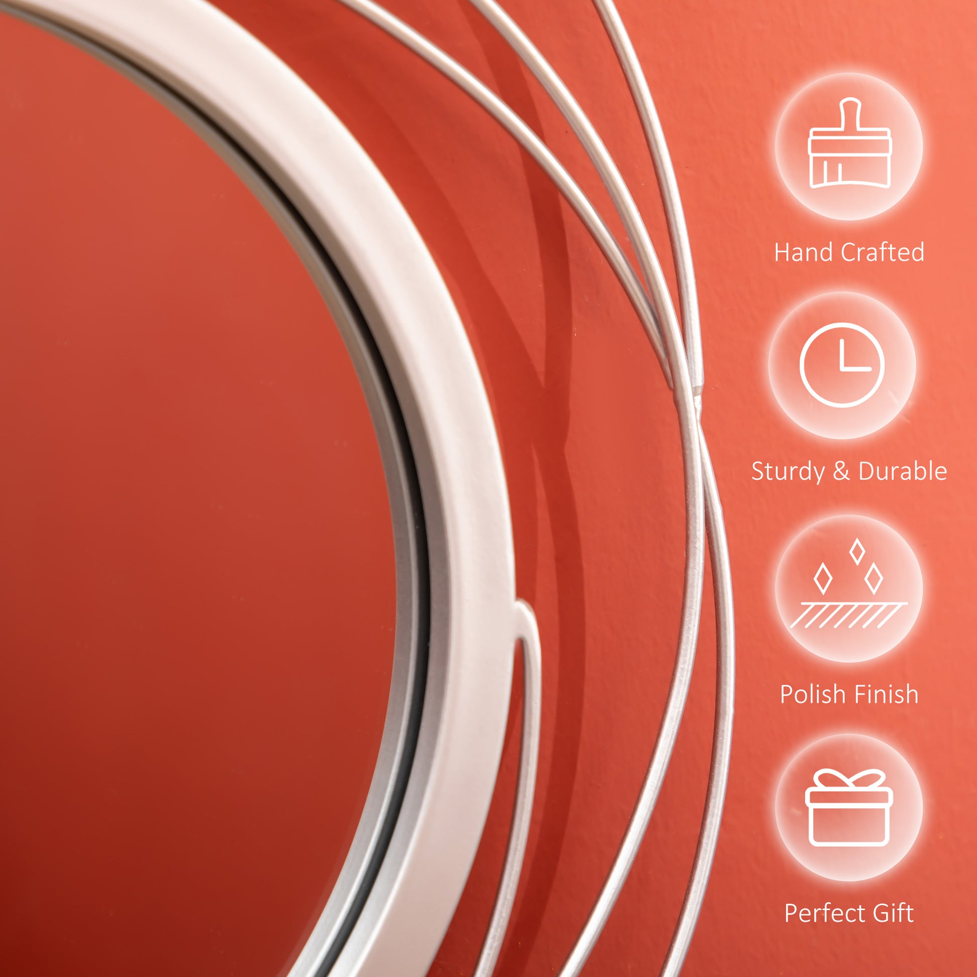 Decorative and functional - what's not to like with this mirrored wall art from HOMCOM? Here this piece features four mirrors for plenty of reflection - each framed with cut-out asymmetric circular pieces fixed together; covered in a gold-tone finish for a brush of glamour. A metal structure for lasting strength, this mirror features hooks on the back to attach to surfaces with ease - comes with a hanging kit so you have everything you need to use straight out the box.