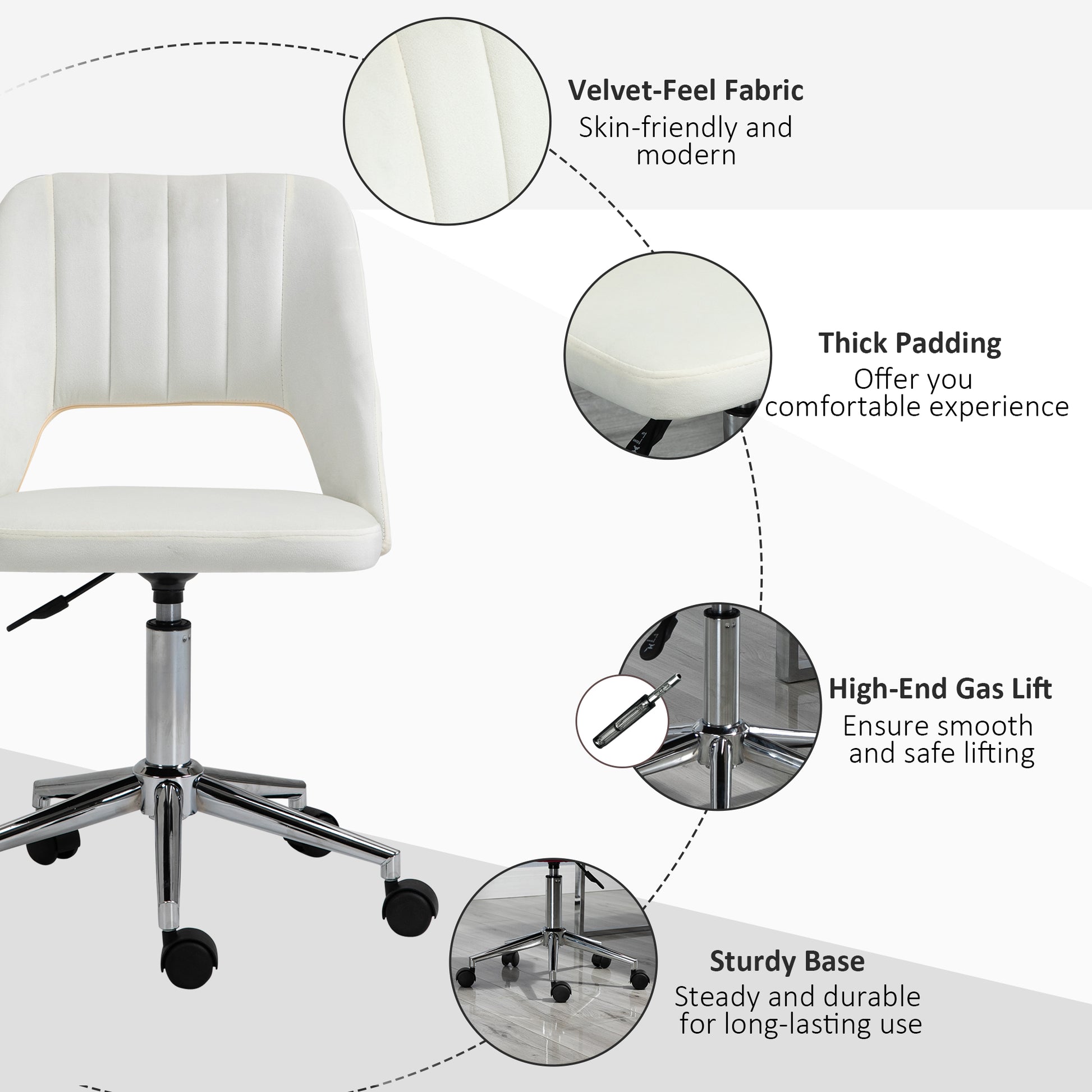 Mid-Back Swivel Home Office Chair Scallop Computer Chair Cream White