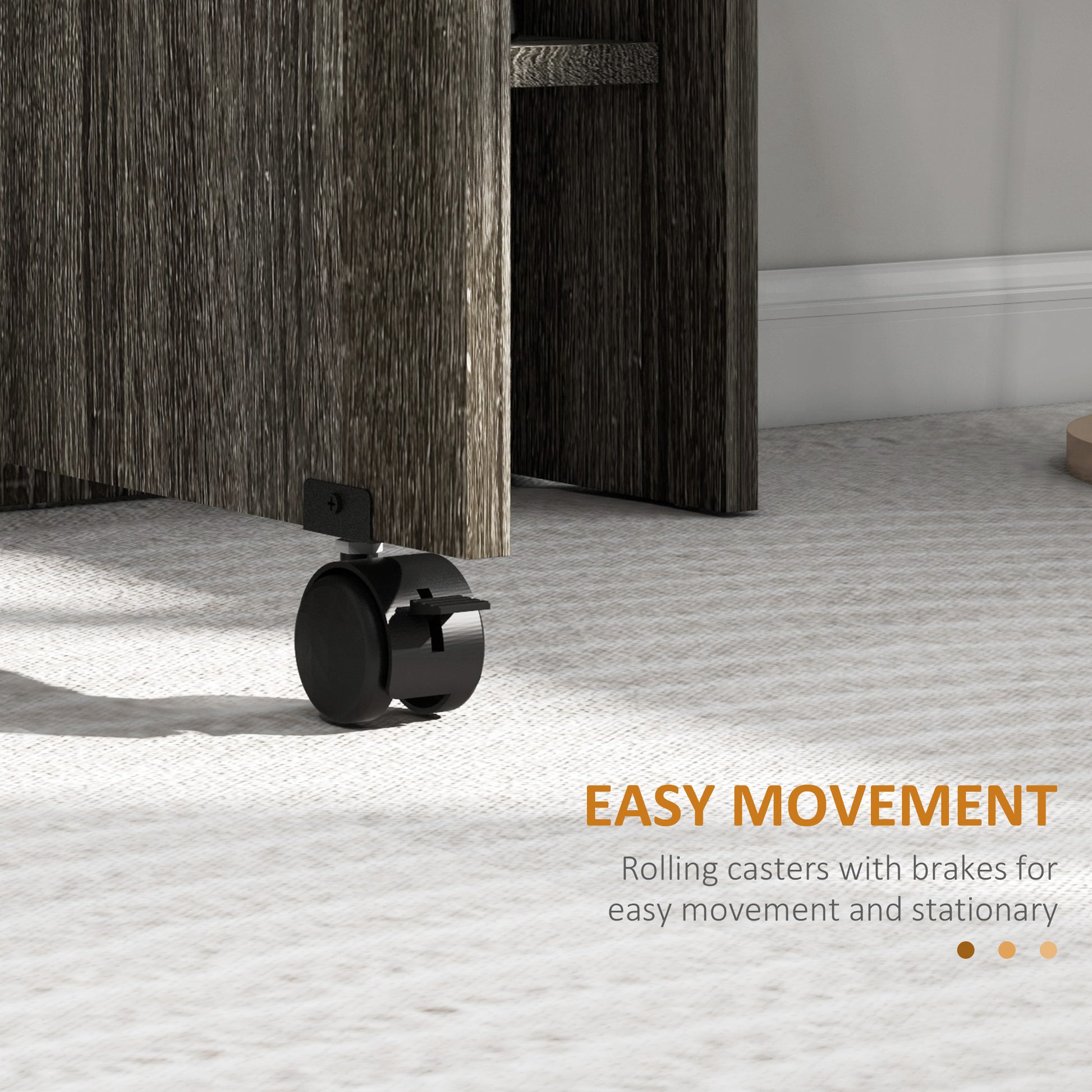 - Two wheels with brakes: move around easily