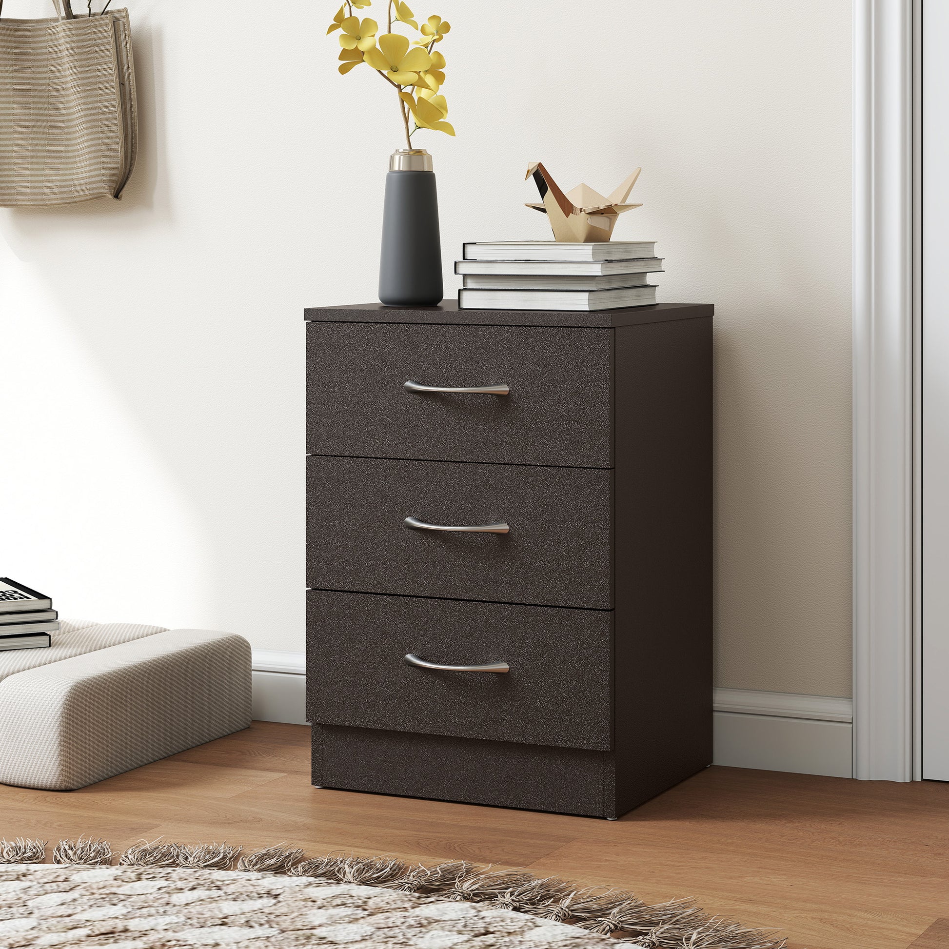 Modern 3 Drawers Side Table, Bedside Table with Wood Effect, Black
