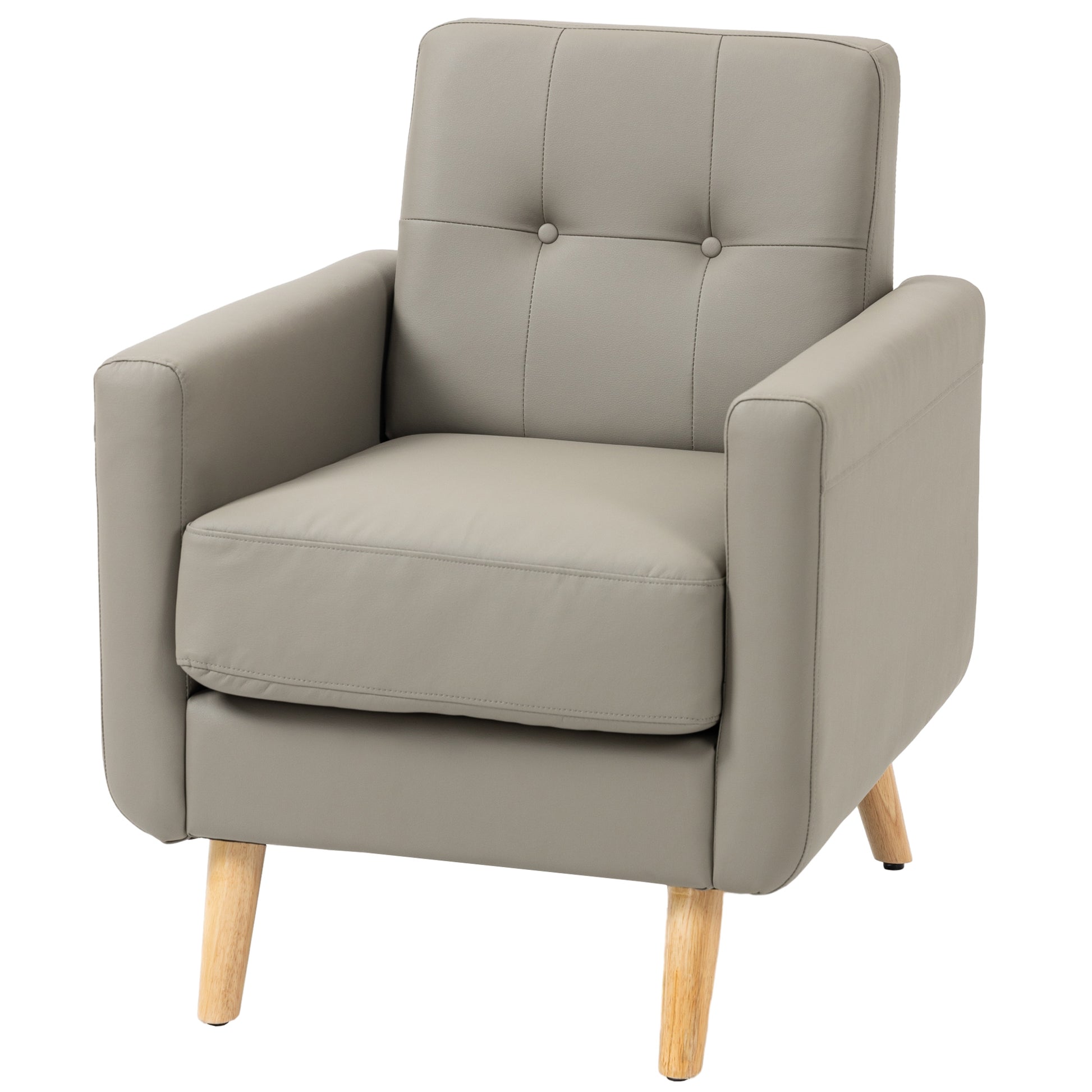 Modern Accent Chair, Tufted Living Room Chairs, PU Leather Armchair for Bedroom, Home Office, Grey