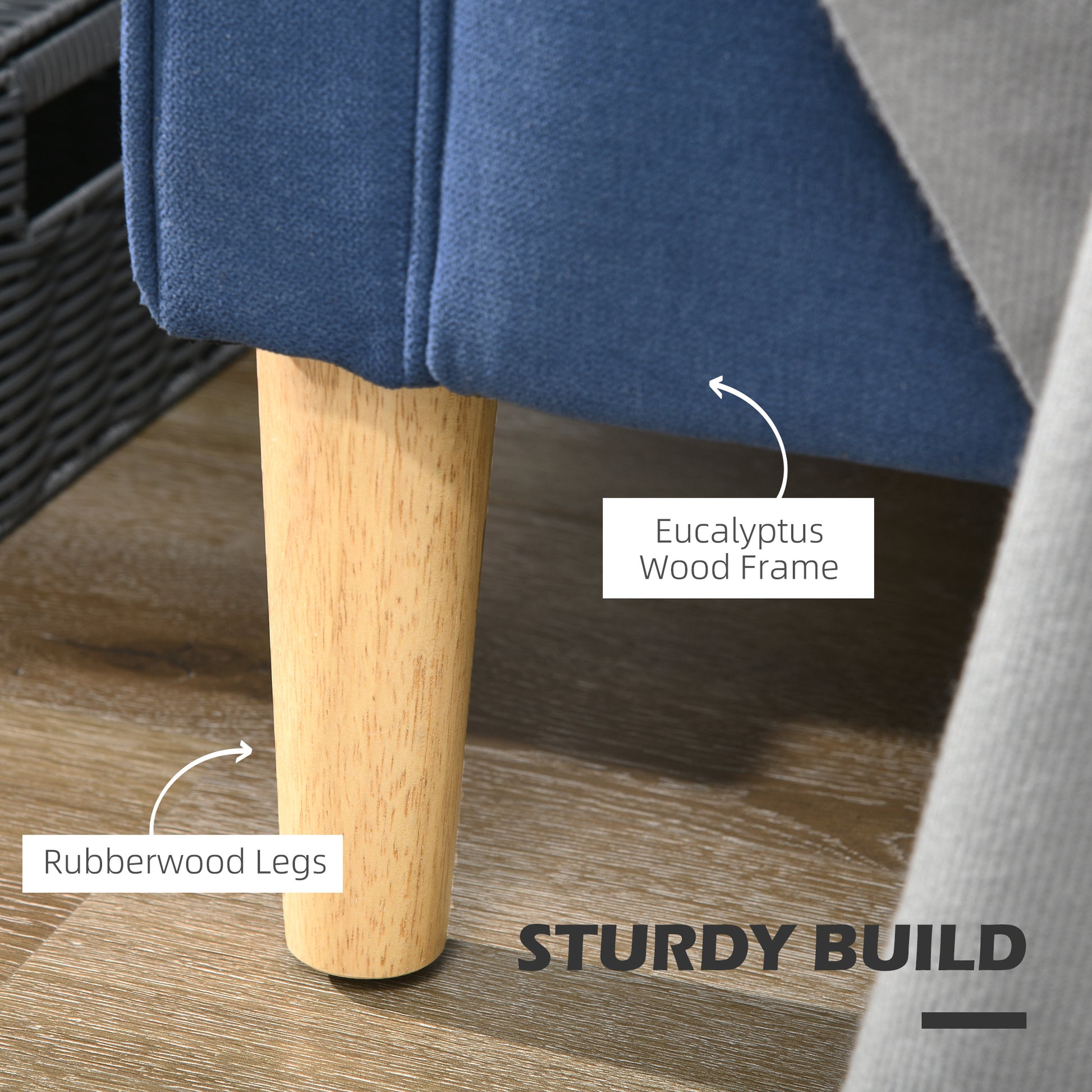 Modern Loveseat Sofa, Compact 2 Seater Sofa with Hidden Storage, 117cm Tufted Cotton Couch with Wood Legs, Blue