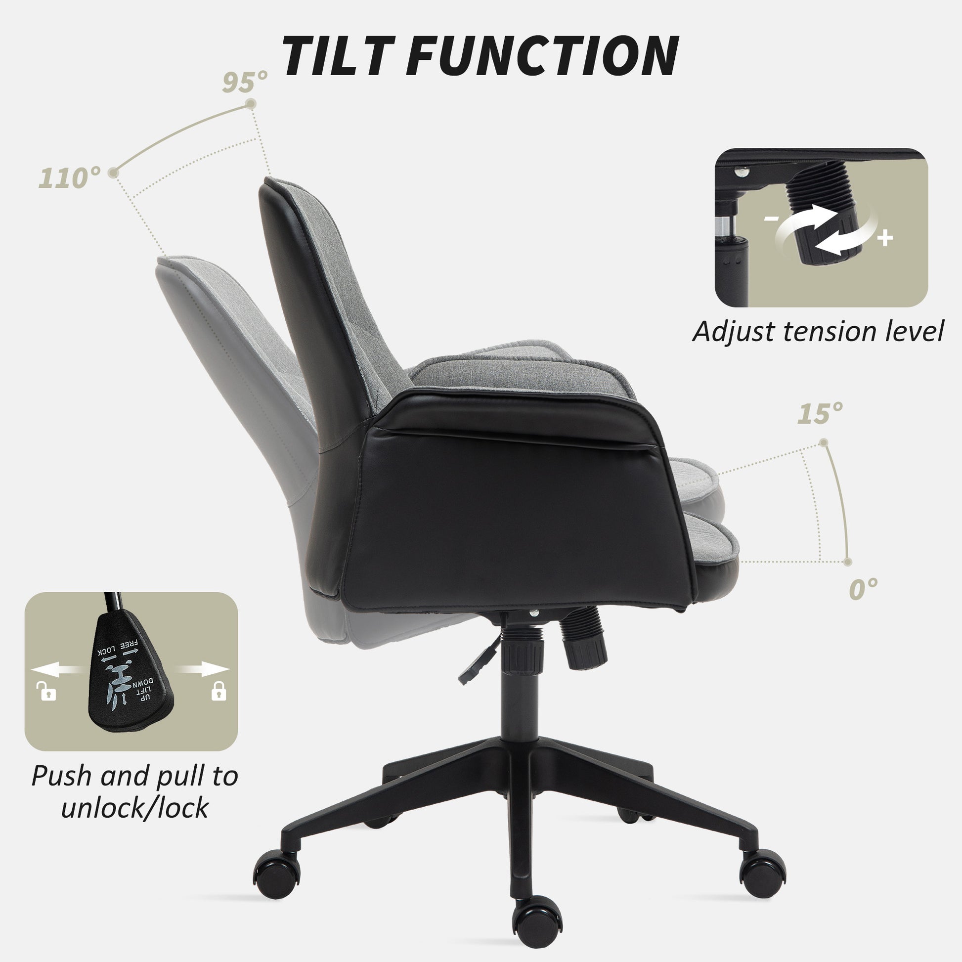 When working long hours at home, you need a comfortable office chair . Breathable linen-feel fabric meets easy-to-clean PU leather, with medium-density foam padding and stylish flared arms for extra comfort and support. Plus, rock your workday away with the smooth tilt function and tailor your seat preferences with adjustable height. It will bring comfort and ease to your workflow.Specifications