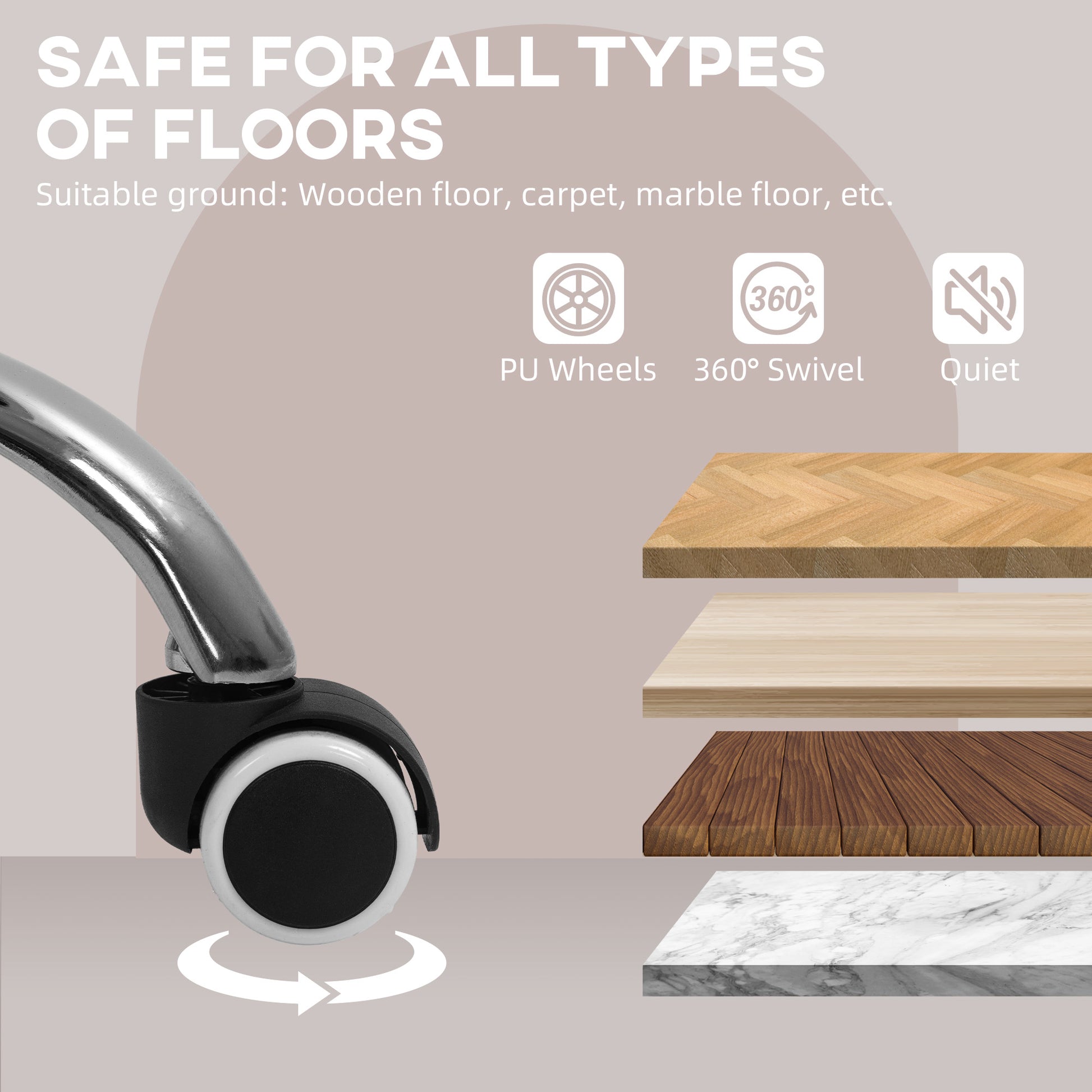 - Five wheels and 360° swivel base