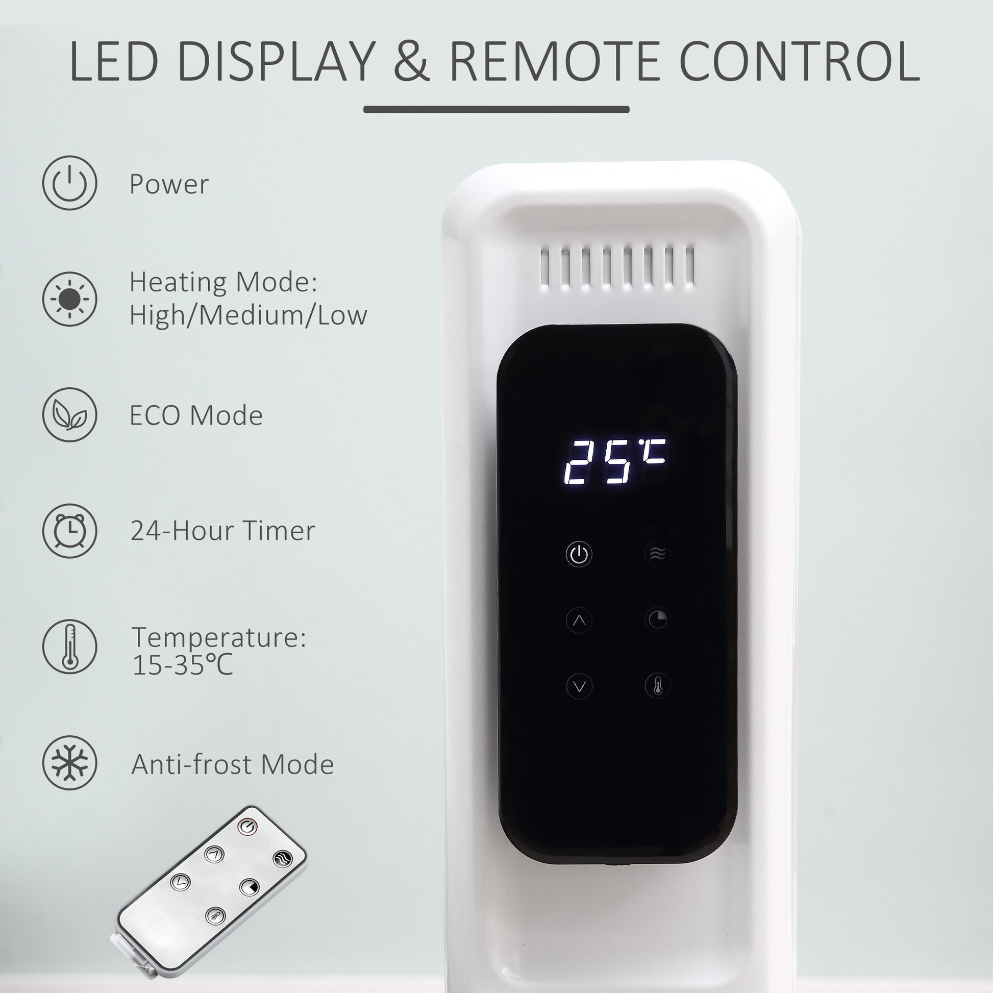 2180W Oil Filled Radiator, 9 Fin, Portable Electric Heater with LED Display, 24H Timer, 3 Heat Settings, Adjustable Thermostat, Remote Control