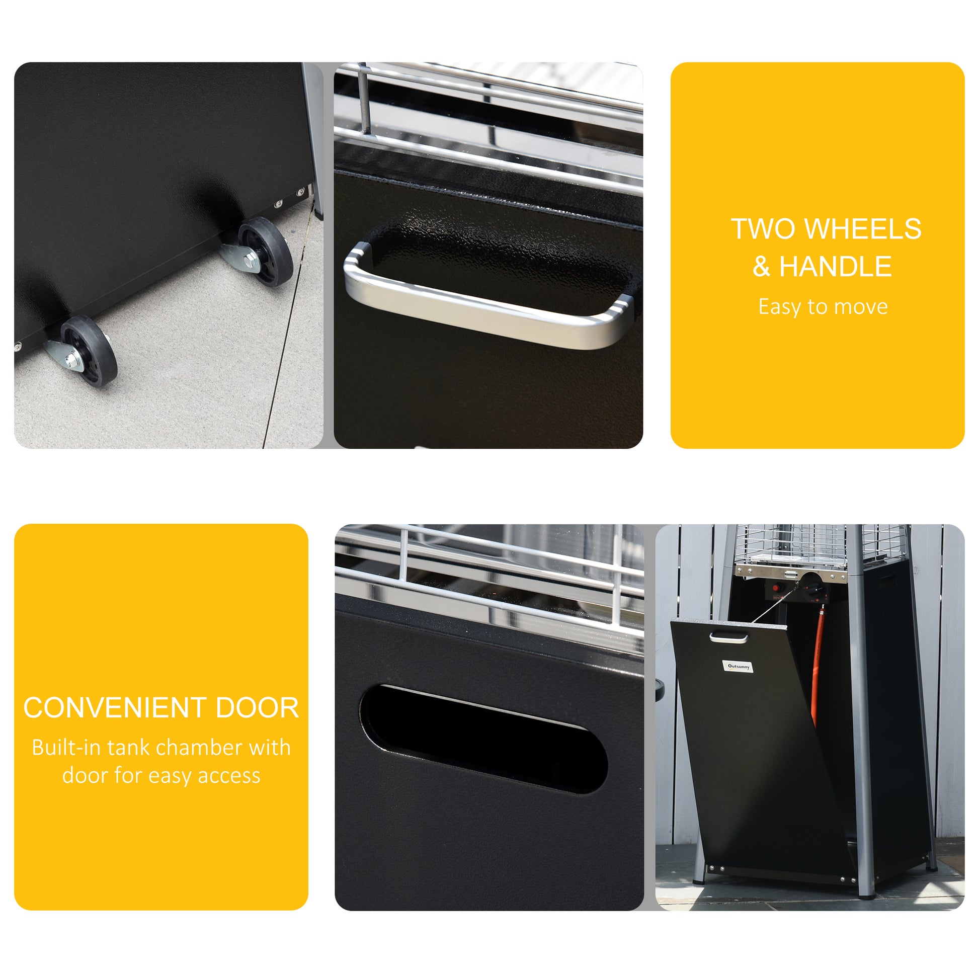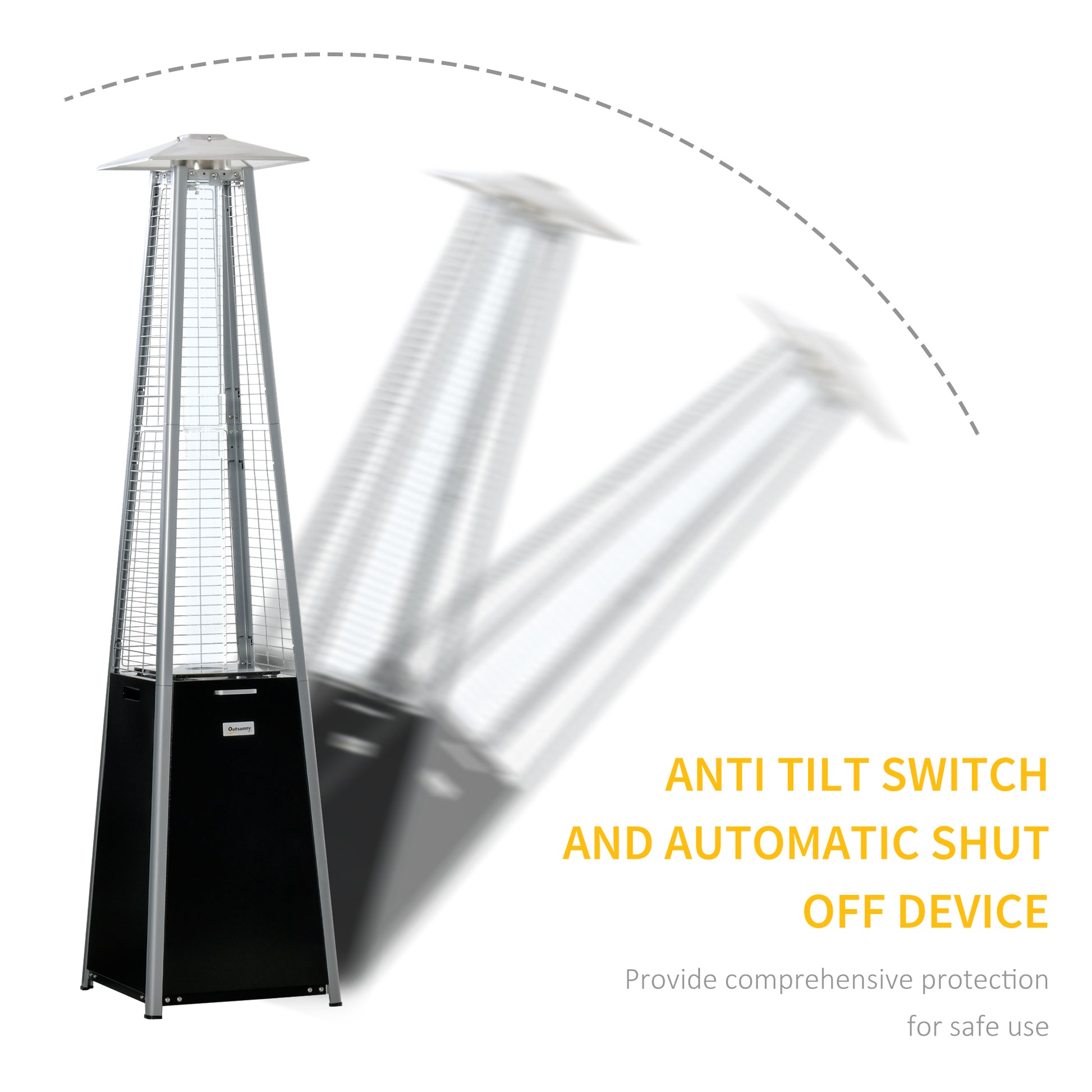 11.2KW Outdoor Patio Gas Heater Freestanding Pyramid Propane Heater Garden Tower Heater with Wheels, Dust Cover, Black, 50 x 50 x 225cm