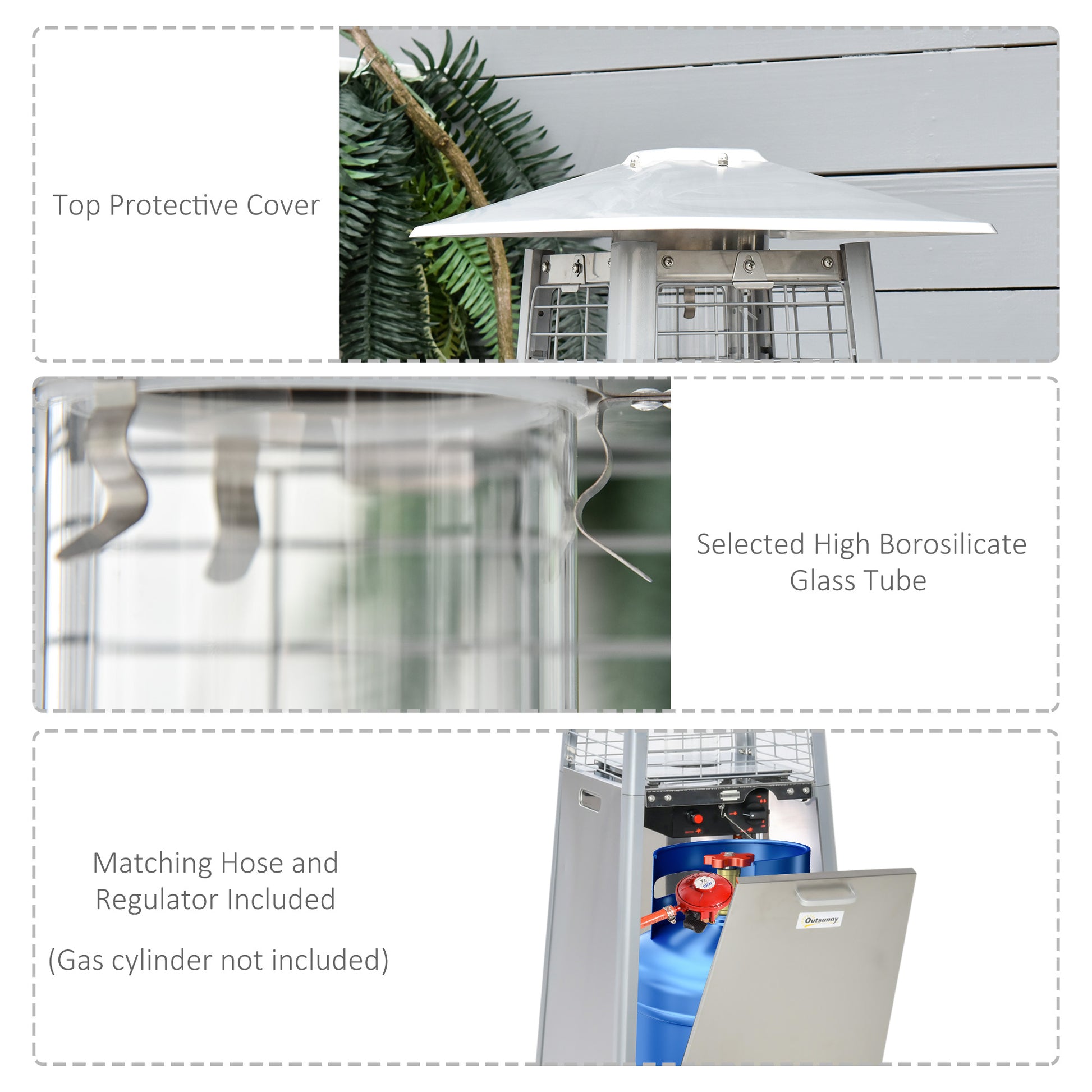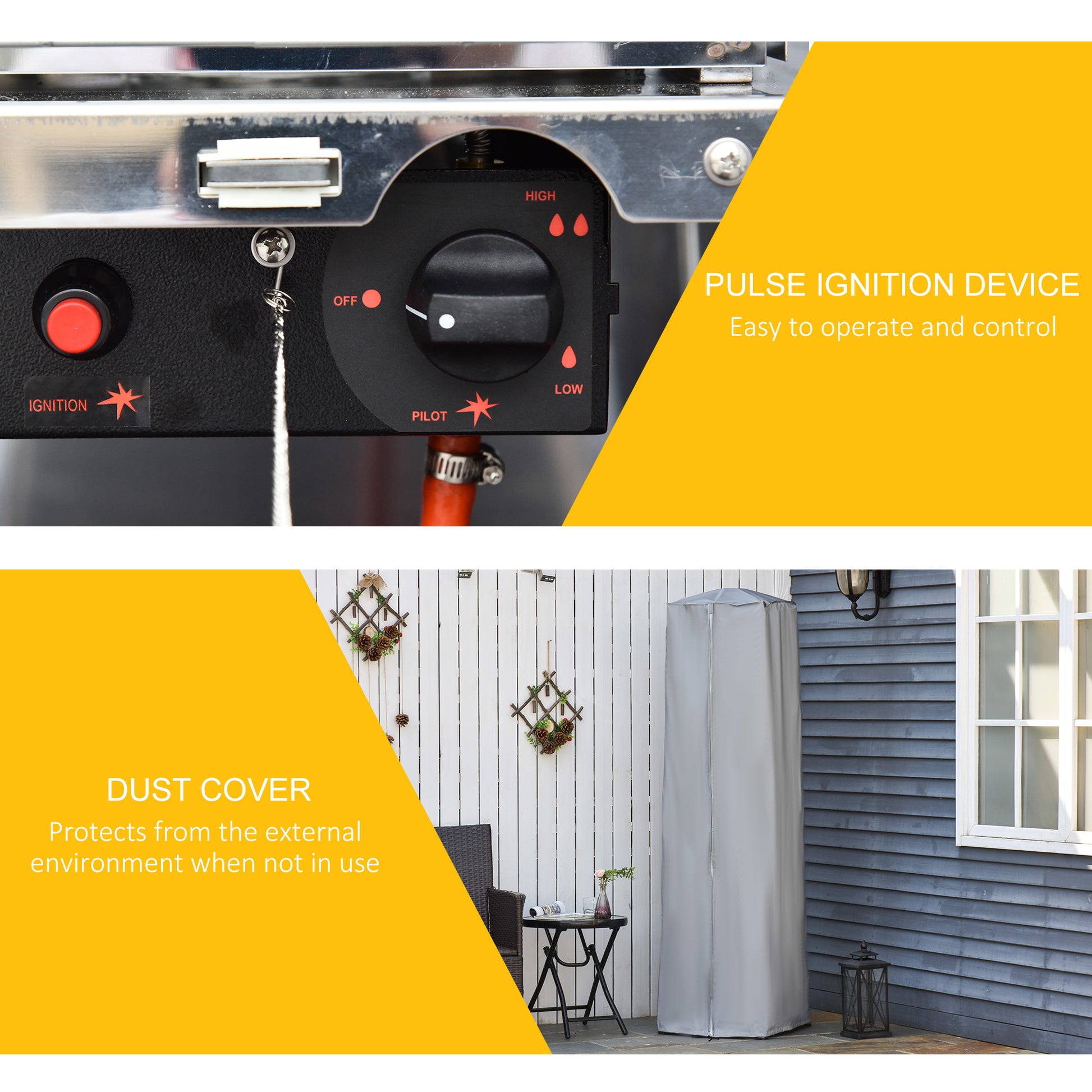 11.2KW Outdoor Patio Gas Heater Stainless Steel Pyramid Propane Heater Garden Freestanding Tower Heater with Wheels, Dust Cover, Silver