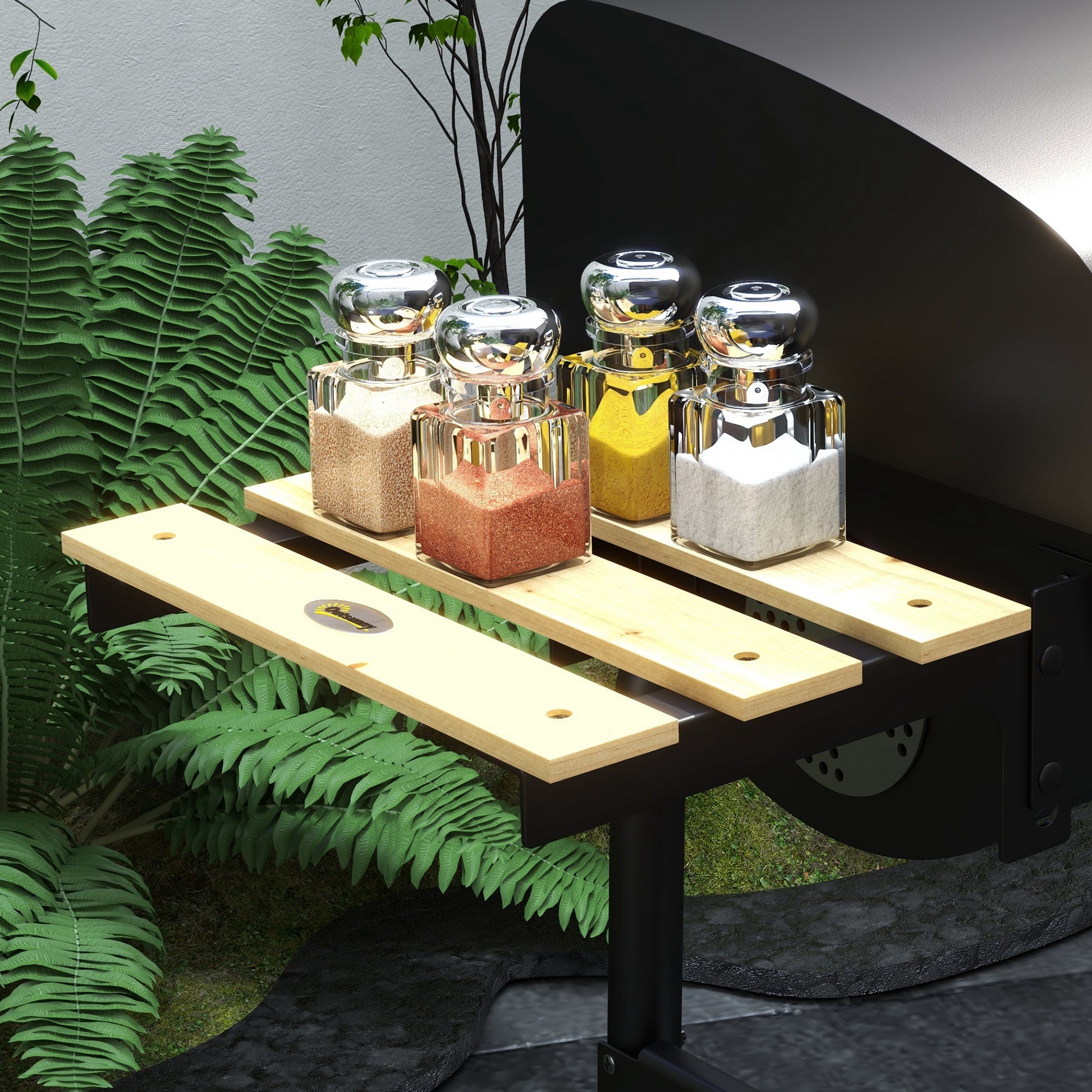 Outdoor Wheeled Charcoal Barbecue Grill Trolley with Shelves, Black