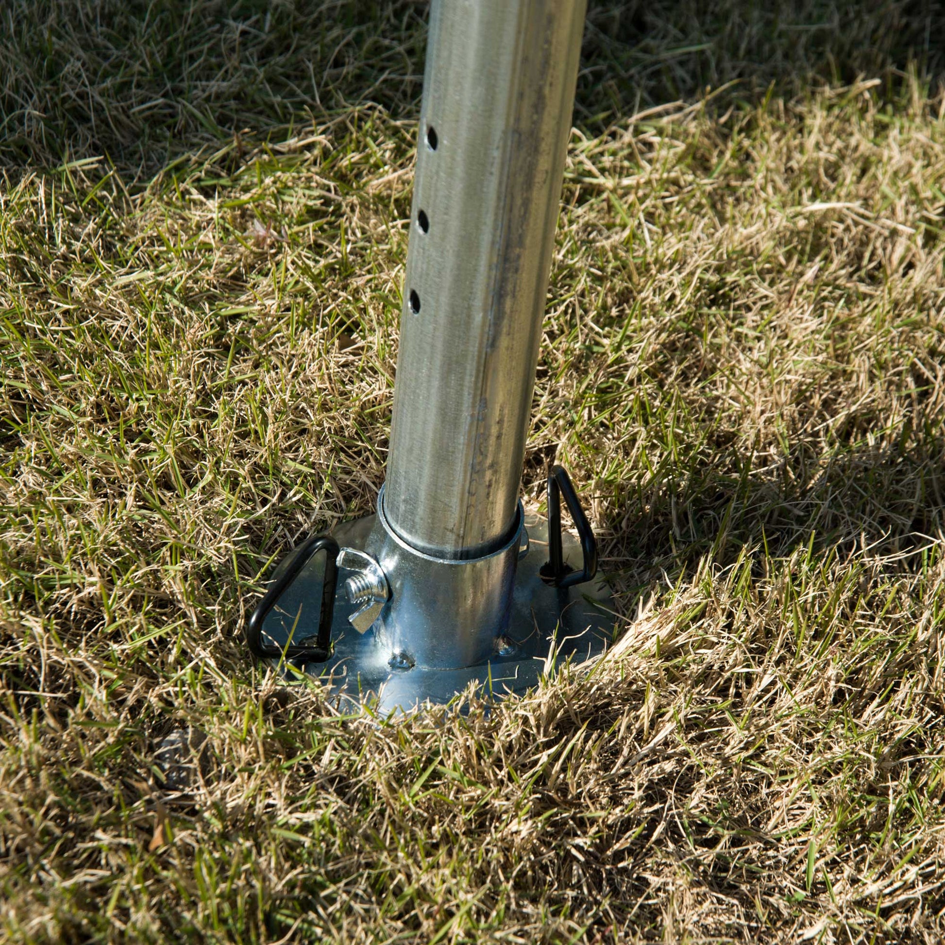 - Heavy duty metal base plate: suitable for use on lawns as well as hard standing.