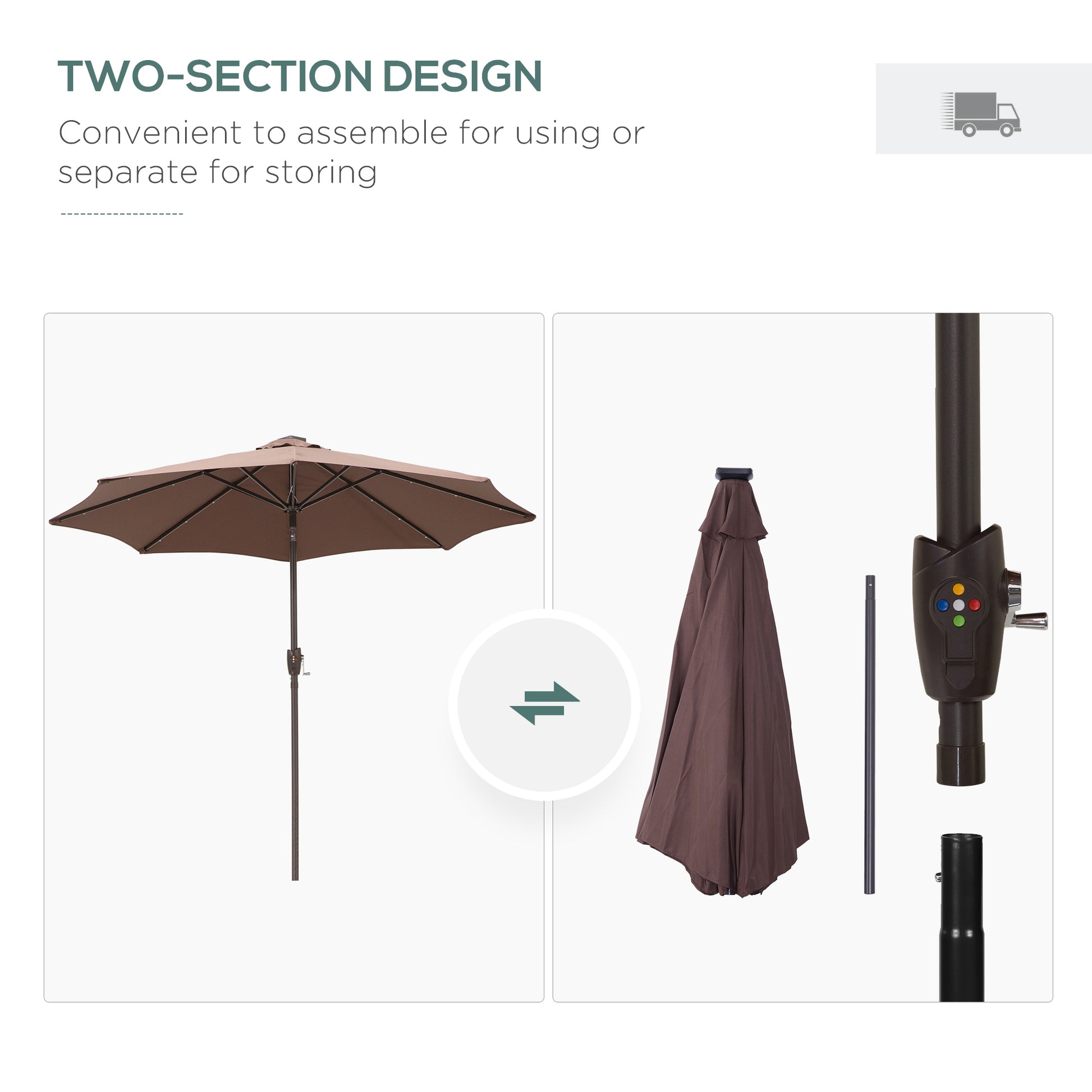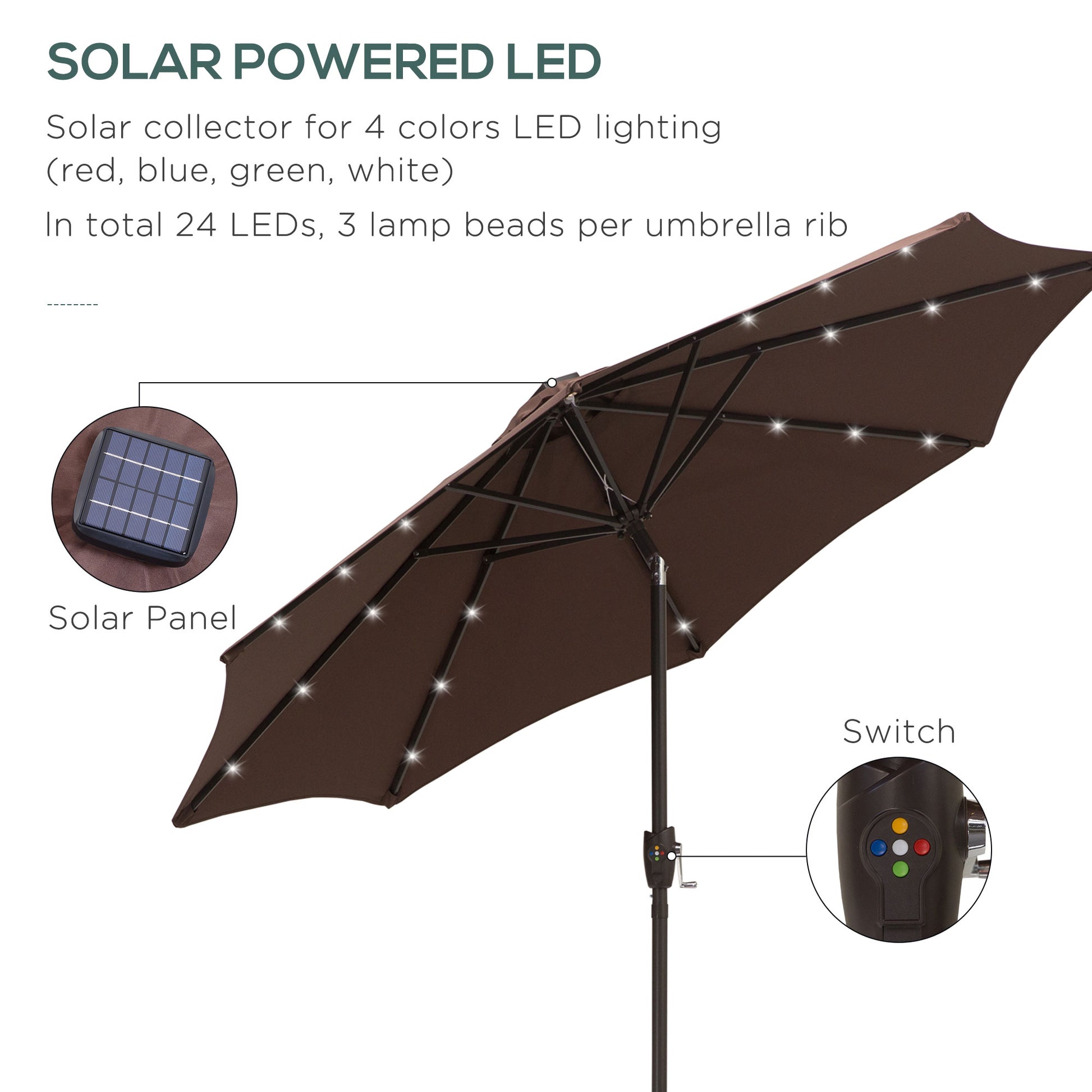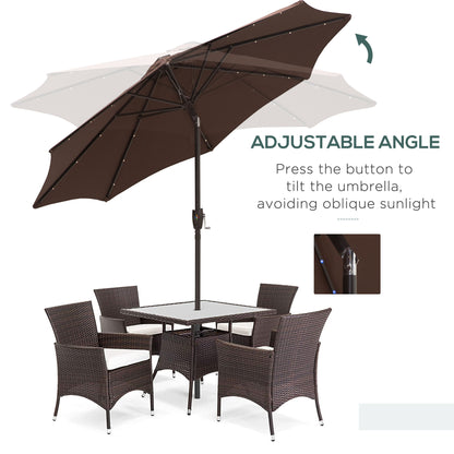 Umbrella Parasol 24 Solar LED-Brown/Coffee