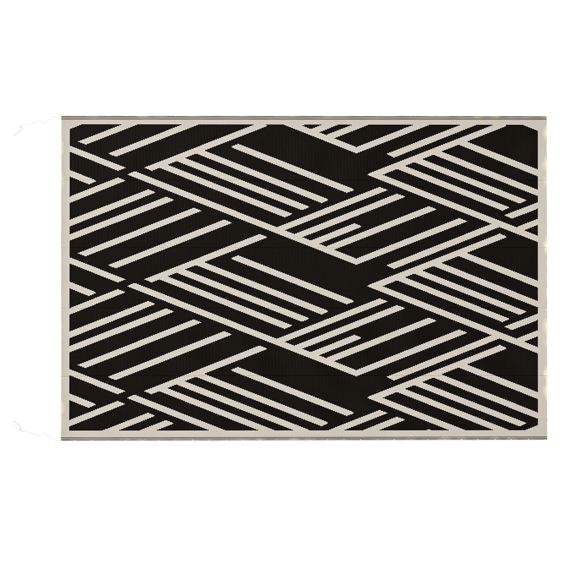 Plastic Straw Reversible RV Outdoor Rug with LED String Light, 182 x 274cm, Black and Coffee