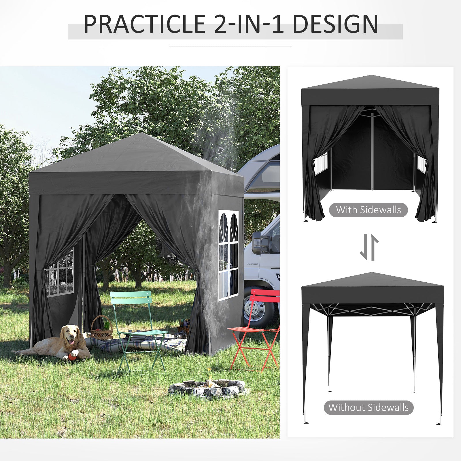 Outsunny 2m x 2m Garden Pop Up Gazebo Marquee Party Tent Wedding Awning Canopy New With free Carrying Case Black + Removable 2 Walls 2 Windows