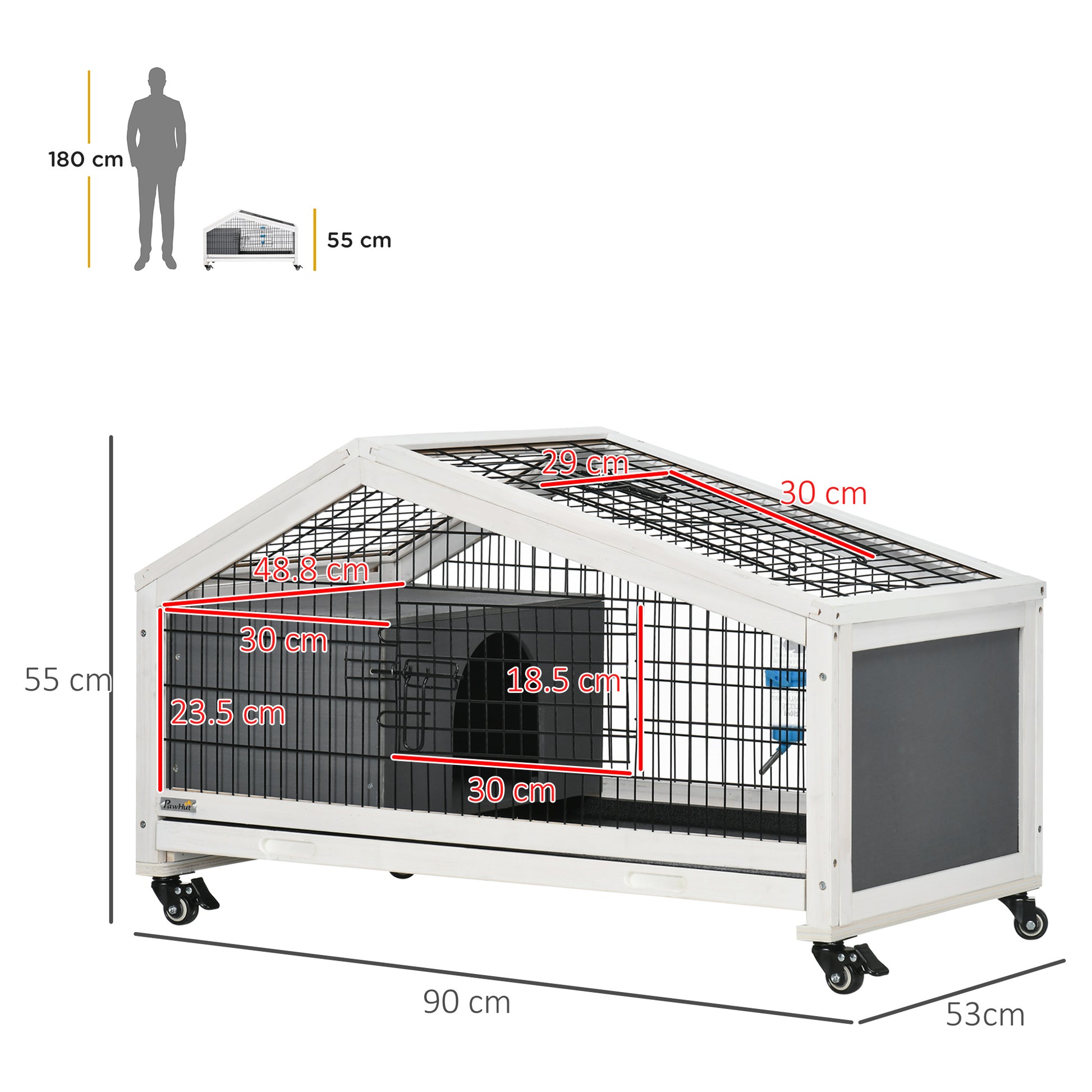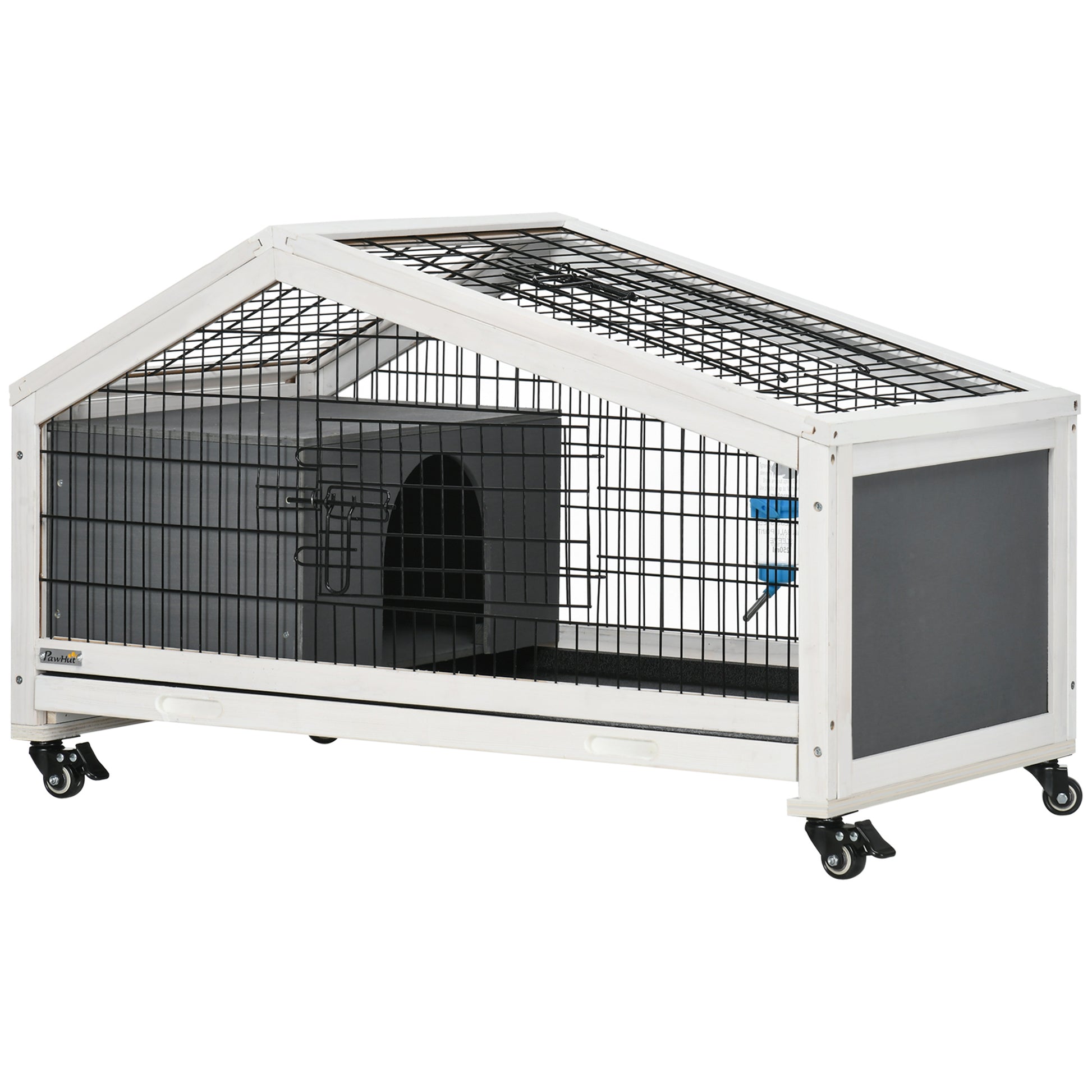 Small pets need comfort and security – this rabbit hutch with run provides both. Suitable for rabbits, guinea pigs and other small pets, it's the ideal mix of safety and freedom. They have lots of room to jump, play and relax, whilst the lockable doors keep them securely inside. A removable tray for simple maintenance, ensuring their space stays clean and comfortable. Finished with four wheels at the bottom for easy movement – have it anywhere in the room, so pets can enjoy their home.Specifications