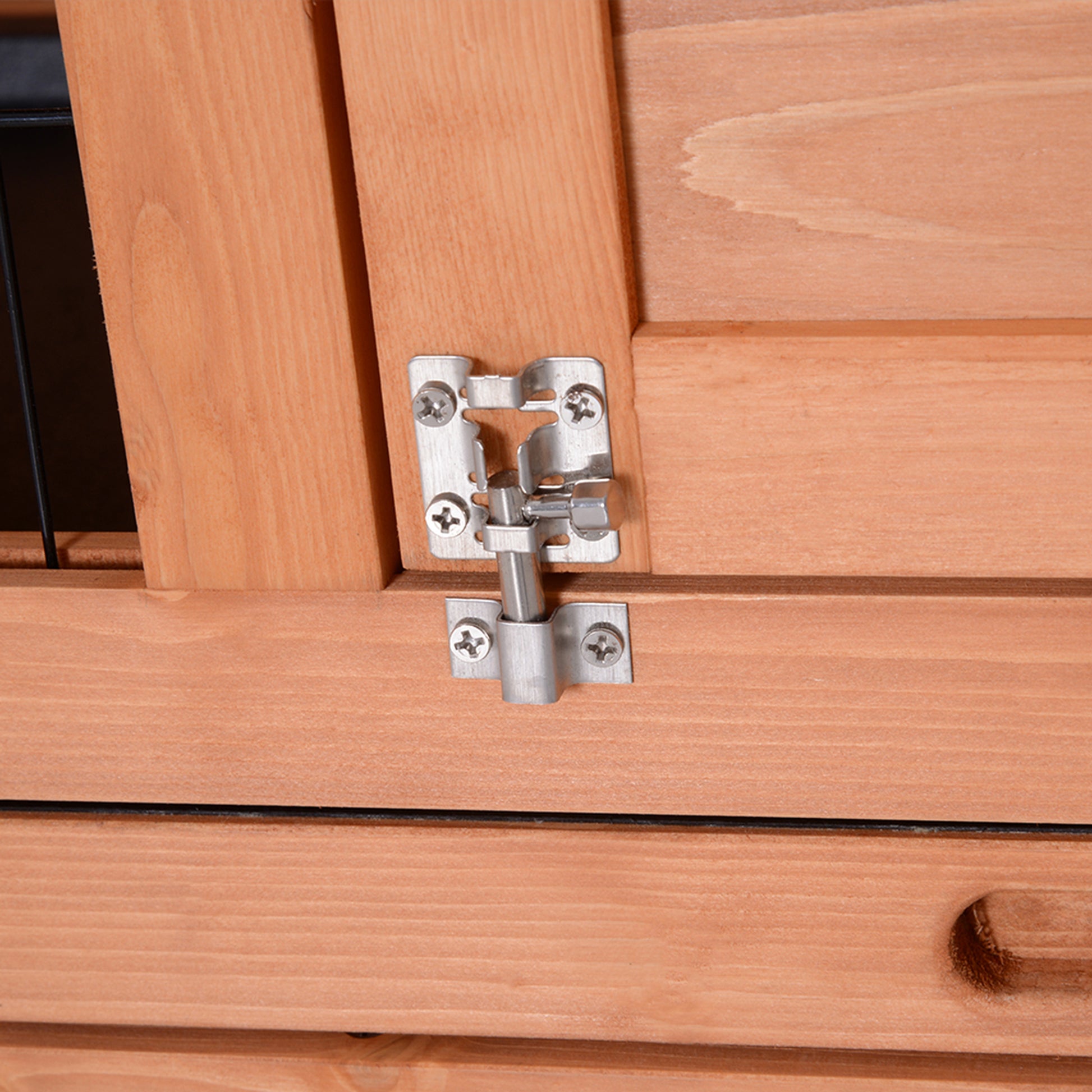 With this rabbit hutch for 2 rabbits from PawHut, small pets will roam, rest and play, thanks to its two-tier design, which can hold two rabbits. There are multiple side doors, making it easy to get inside and maintain the cage. A removable tray at the bottom of the guinea pig hutch for simple cleaning, so their space stays tidy and comfortable. Finished with a fir wood structure, it provides a strong home, whilst the asphalt roof shelters them from hot and wet weather – suitable for outdoors.