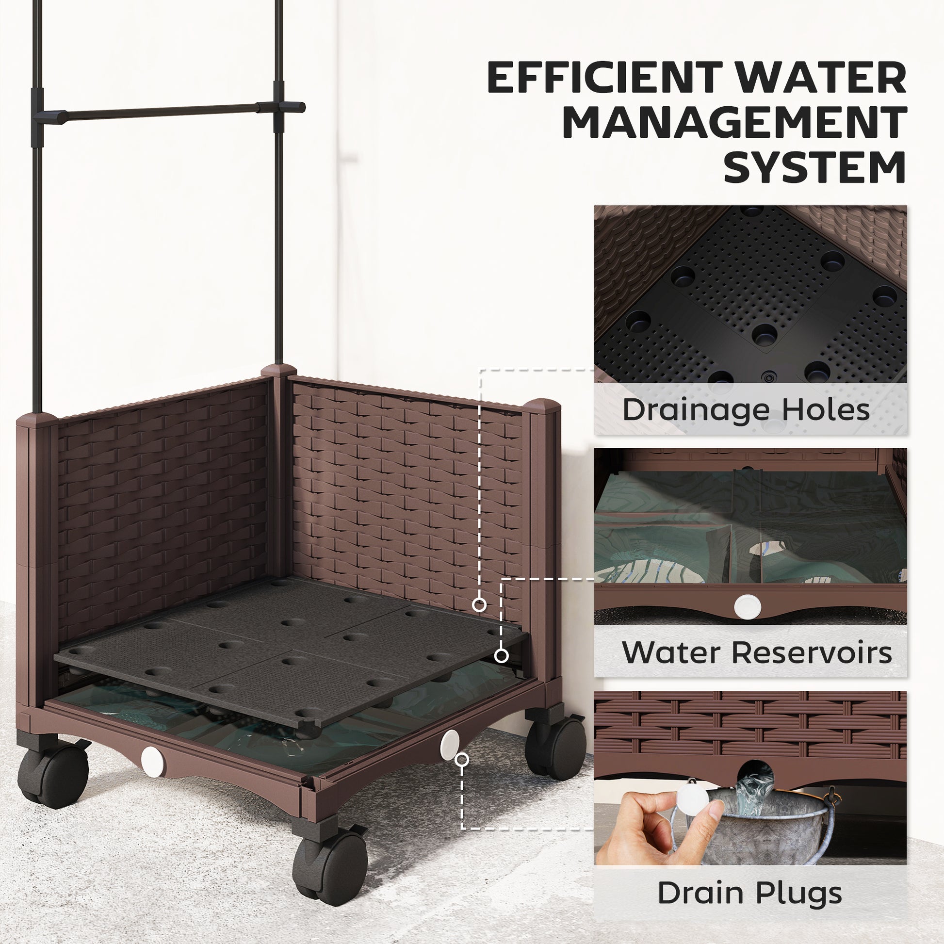 - Four drainage holes with plug allow for flexible water control