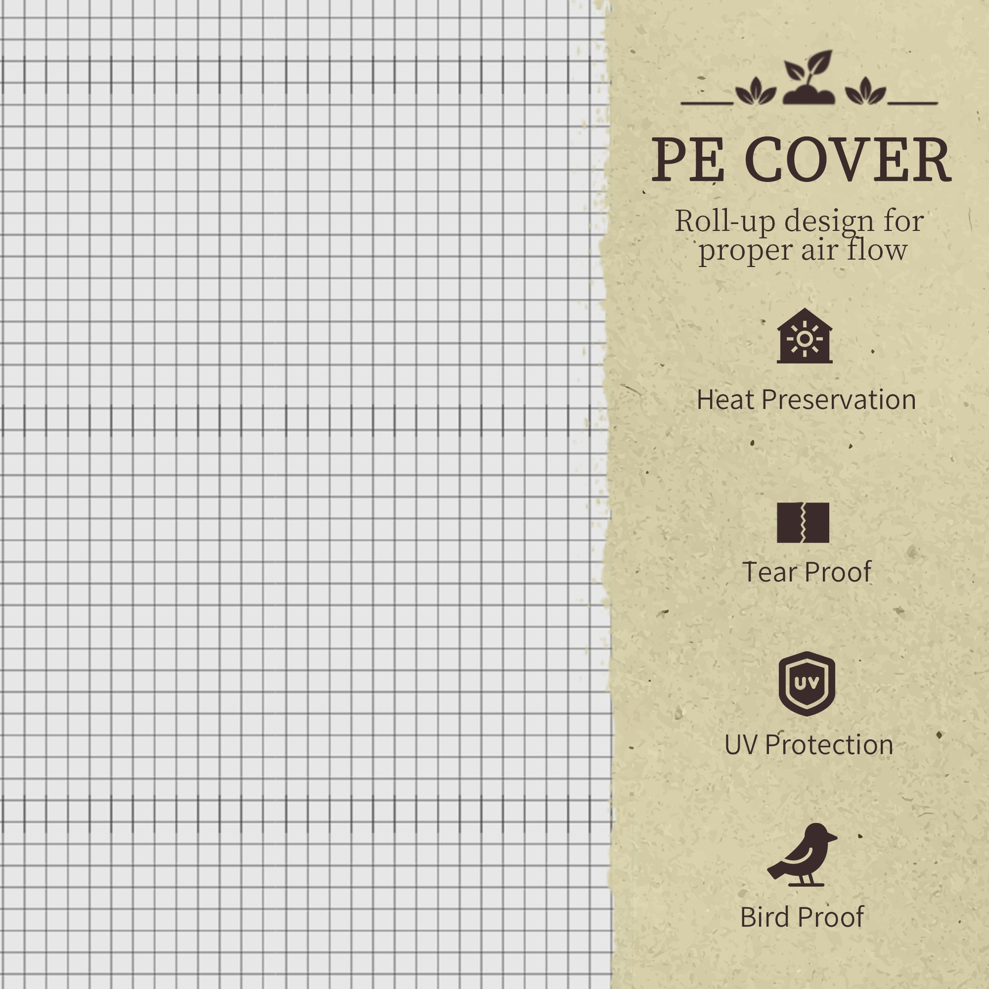 - PE cover keeps inside warm and protects from UV rays and mild rain